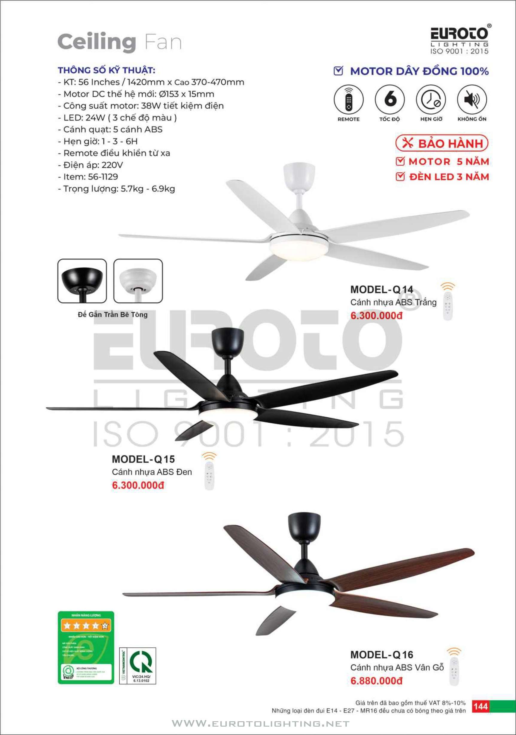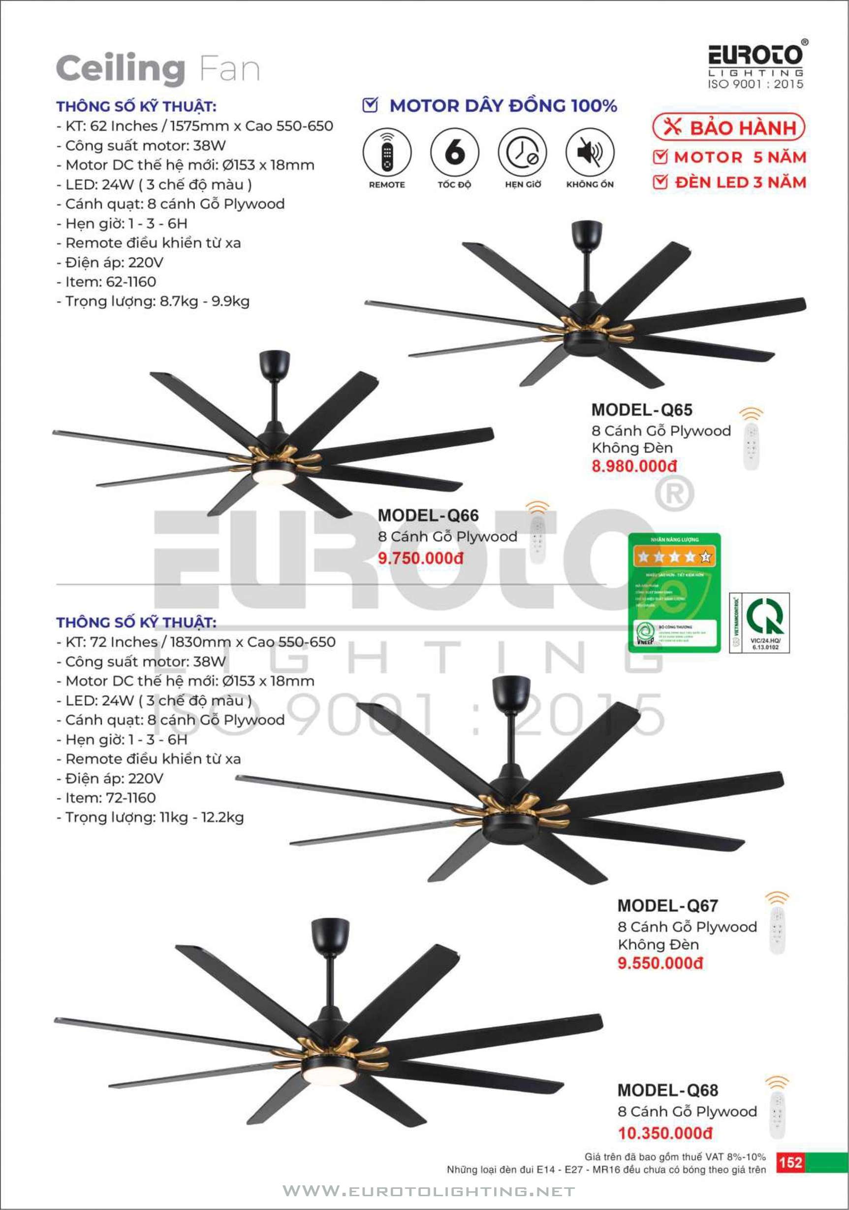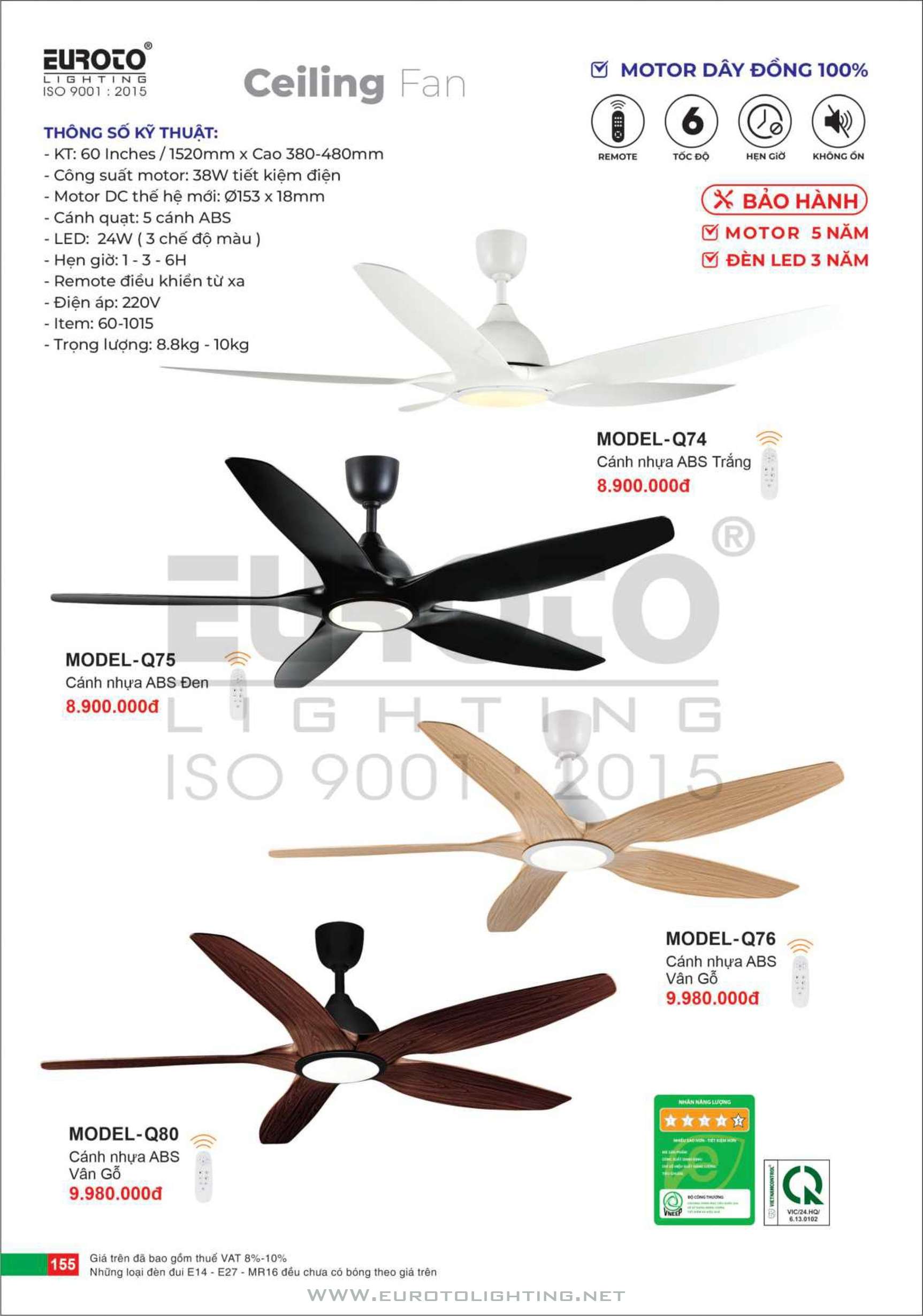 Catalogue Euroto quạt có đèn