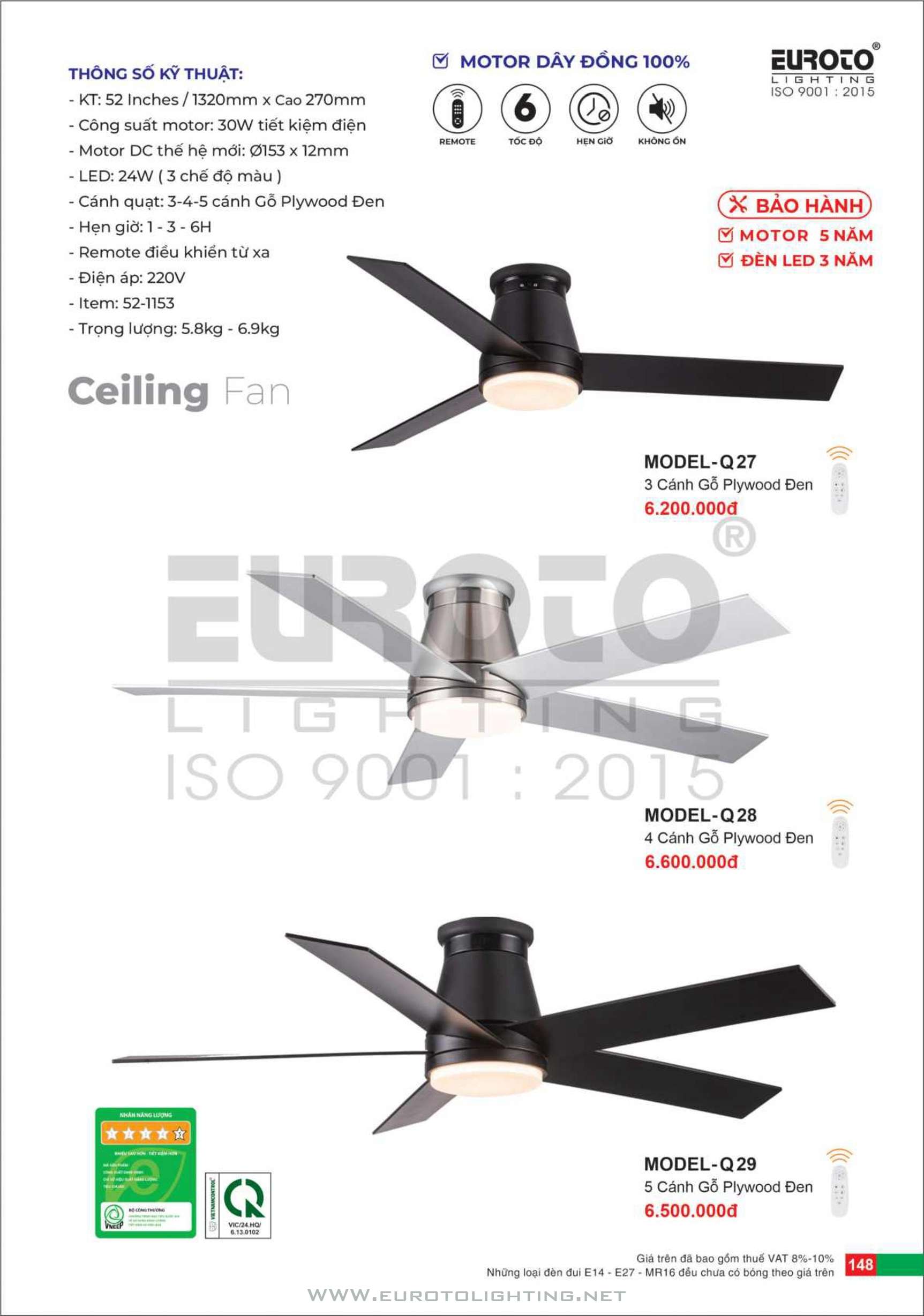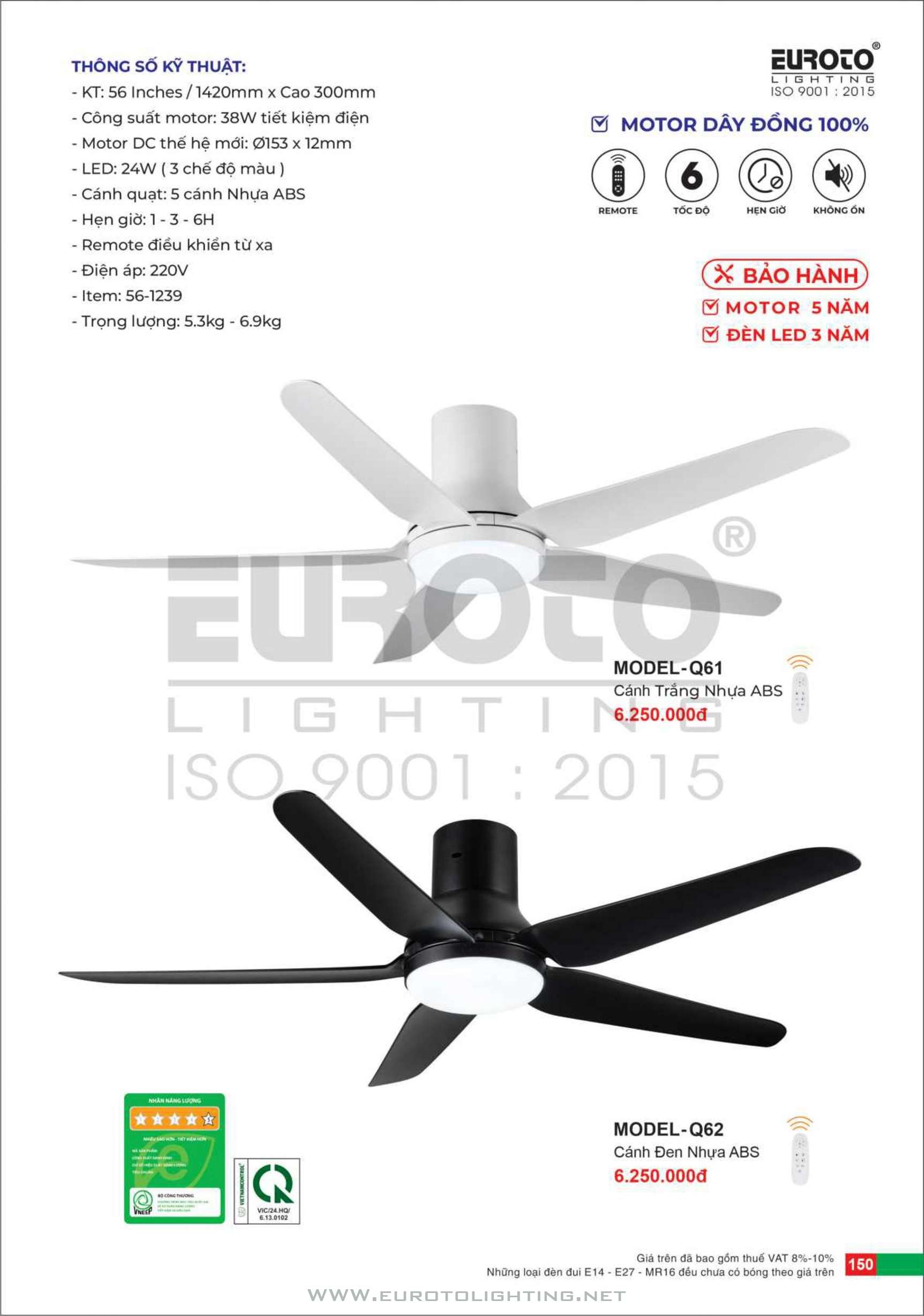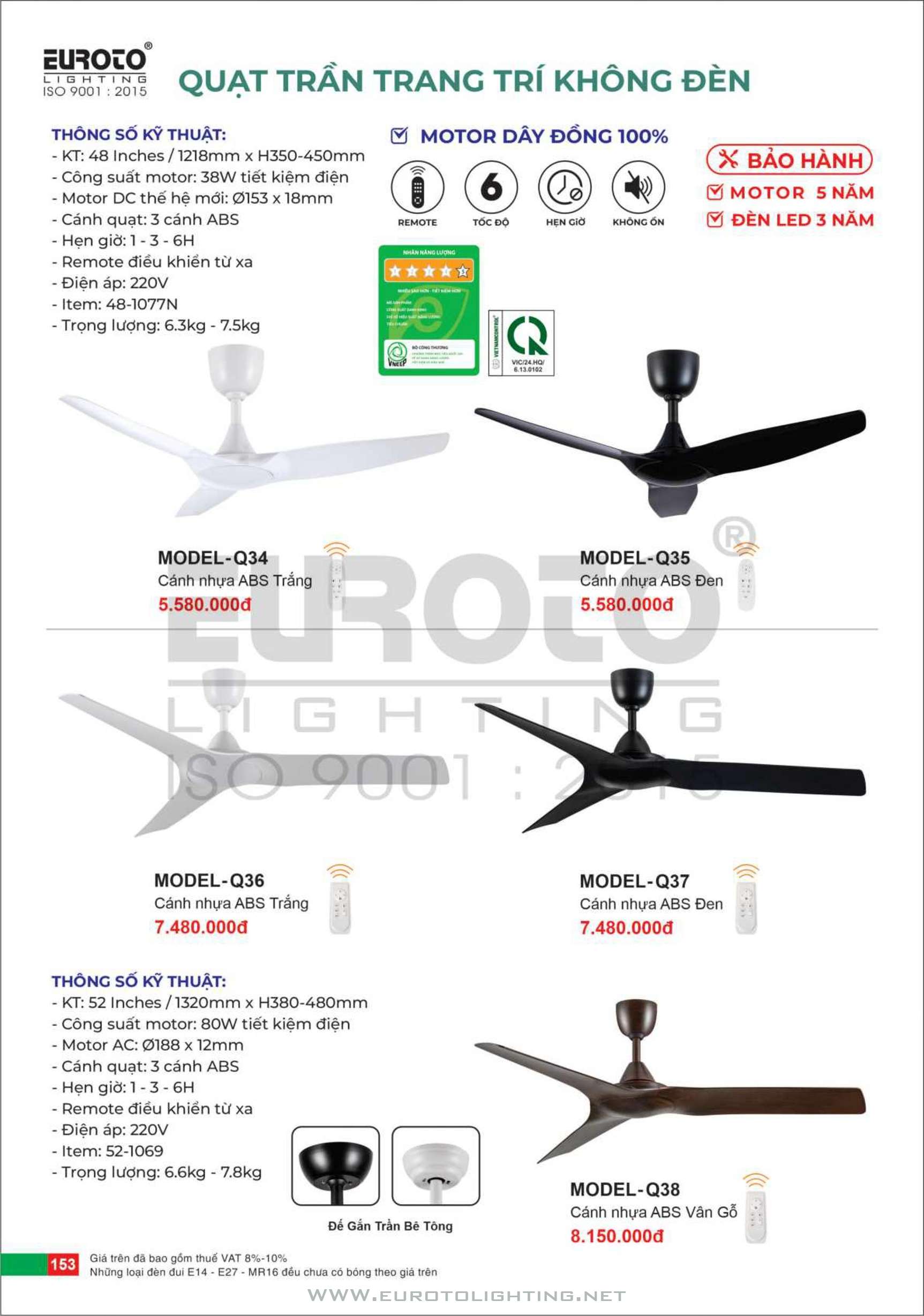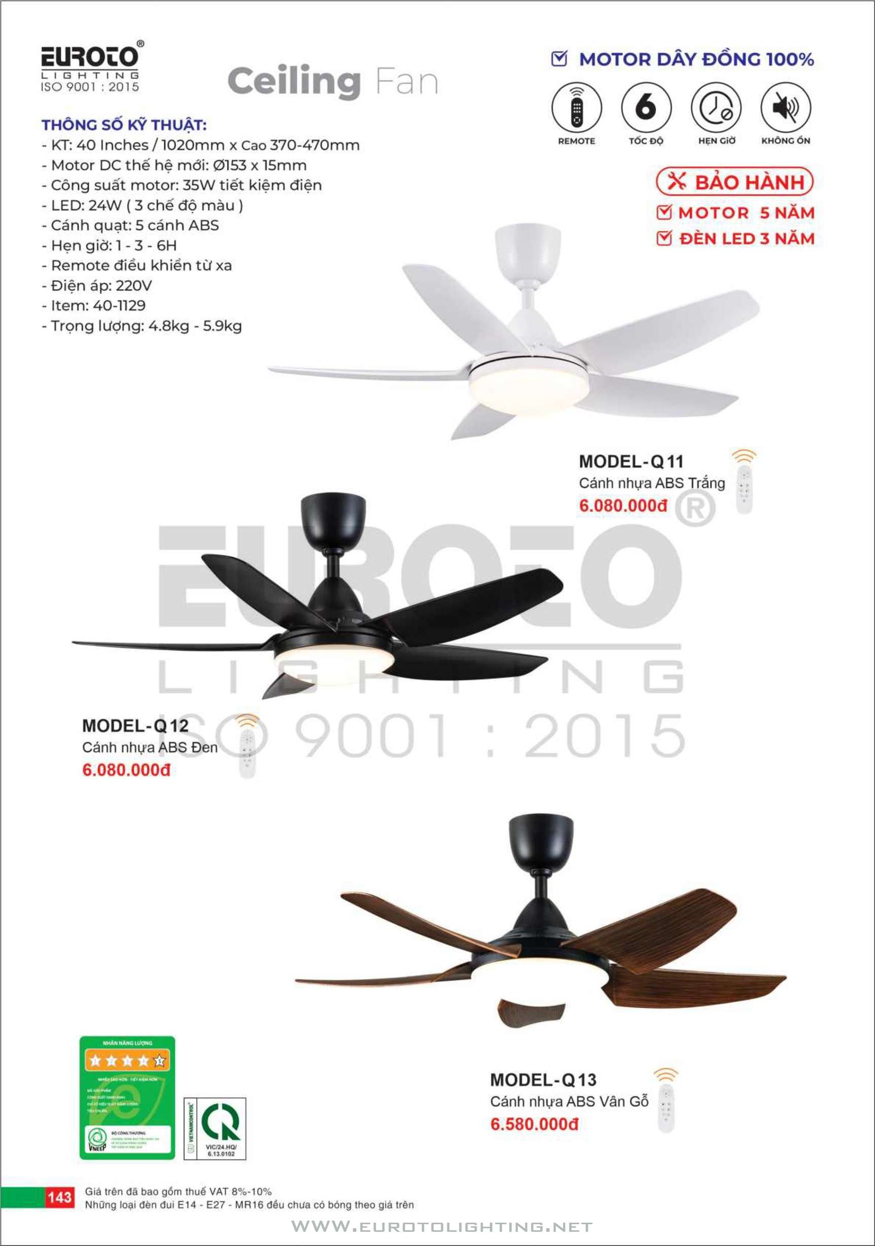 Catalogue Euroto quạt có đèn