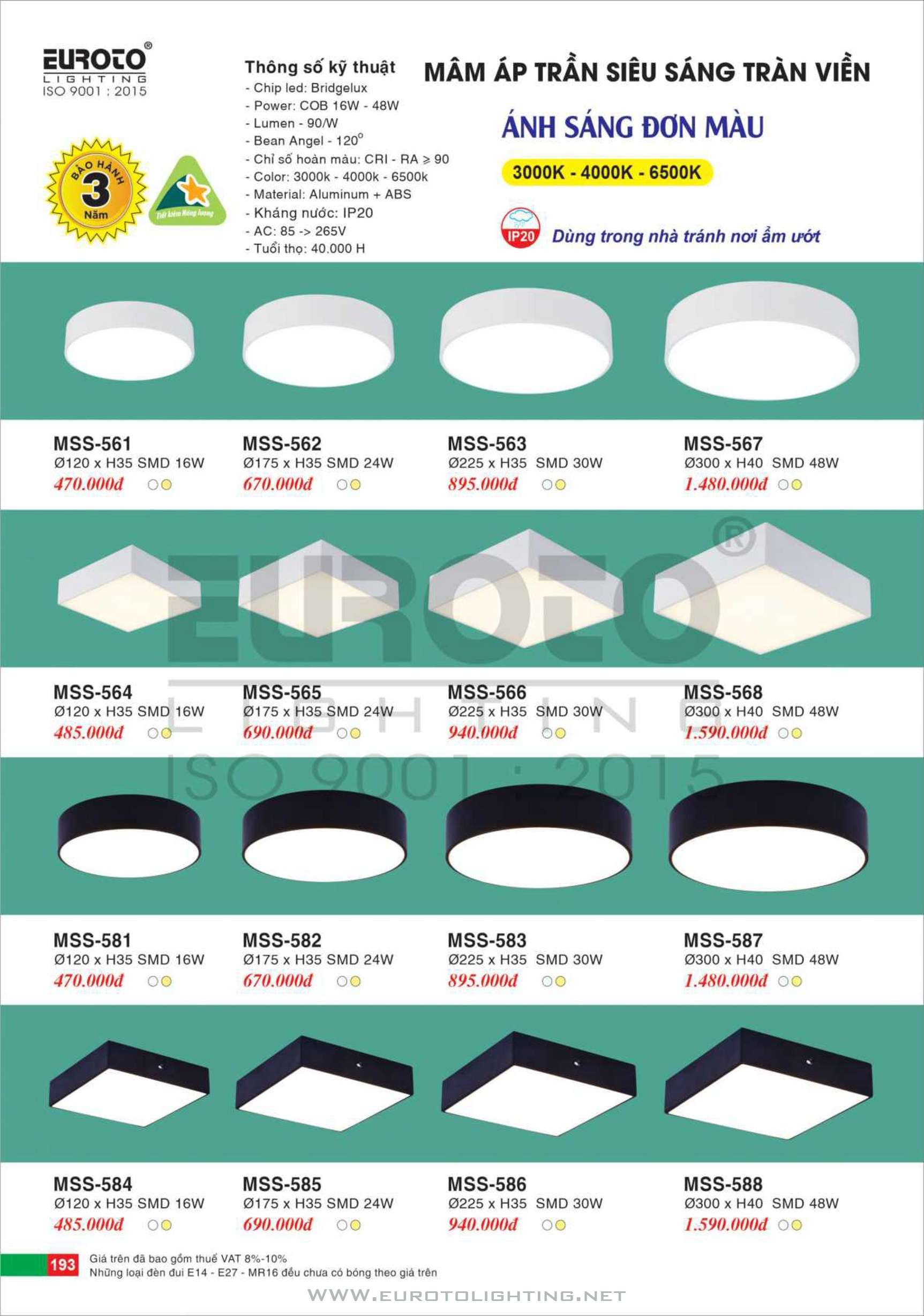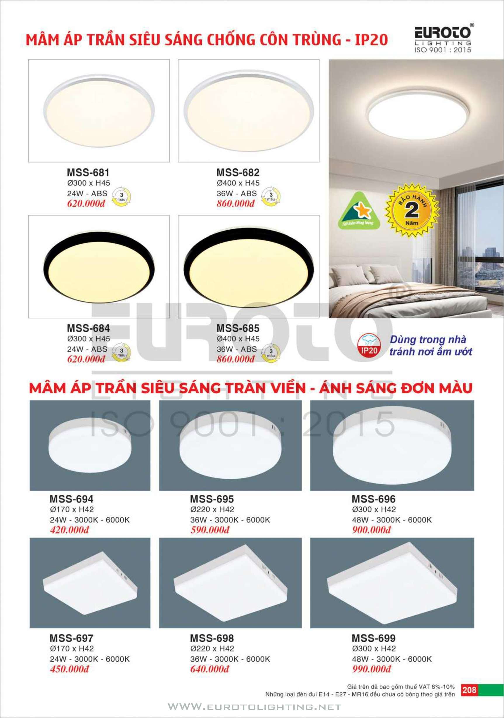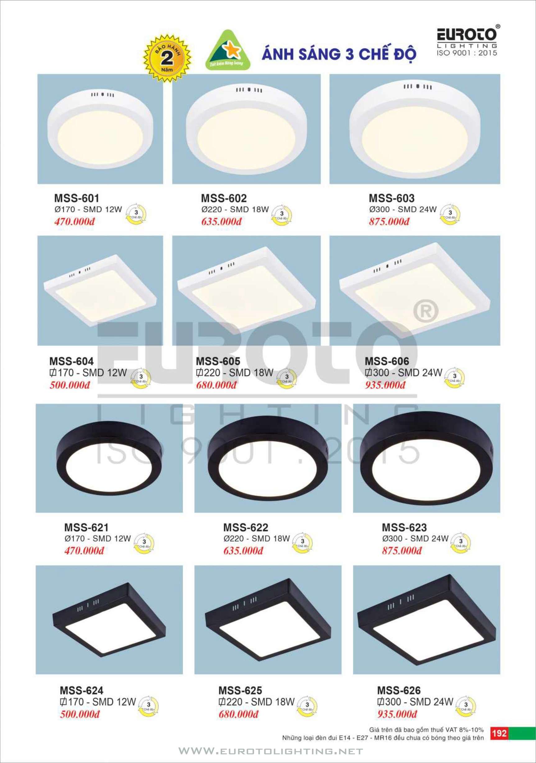 Catalogue Euroto đèn mâm LED ốp trần