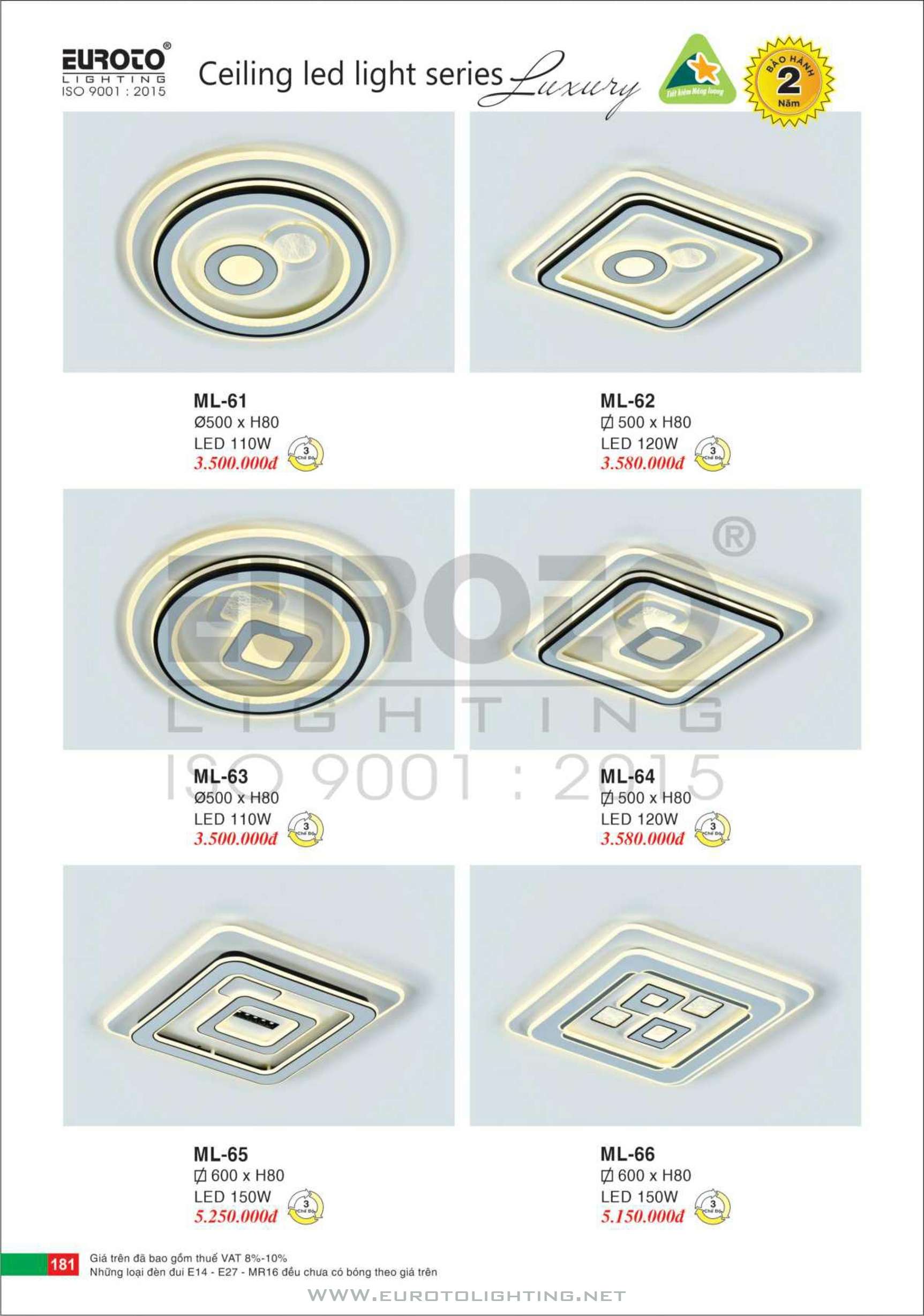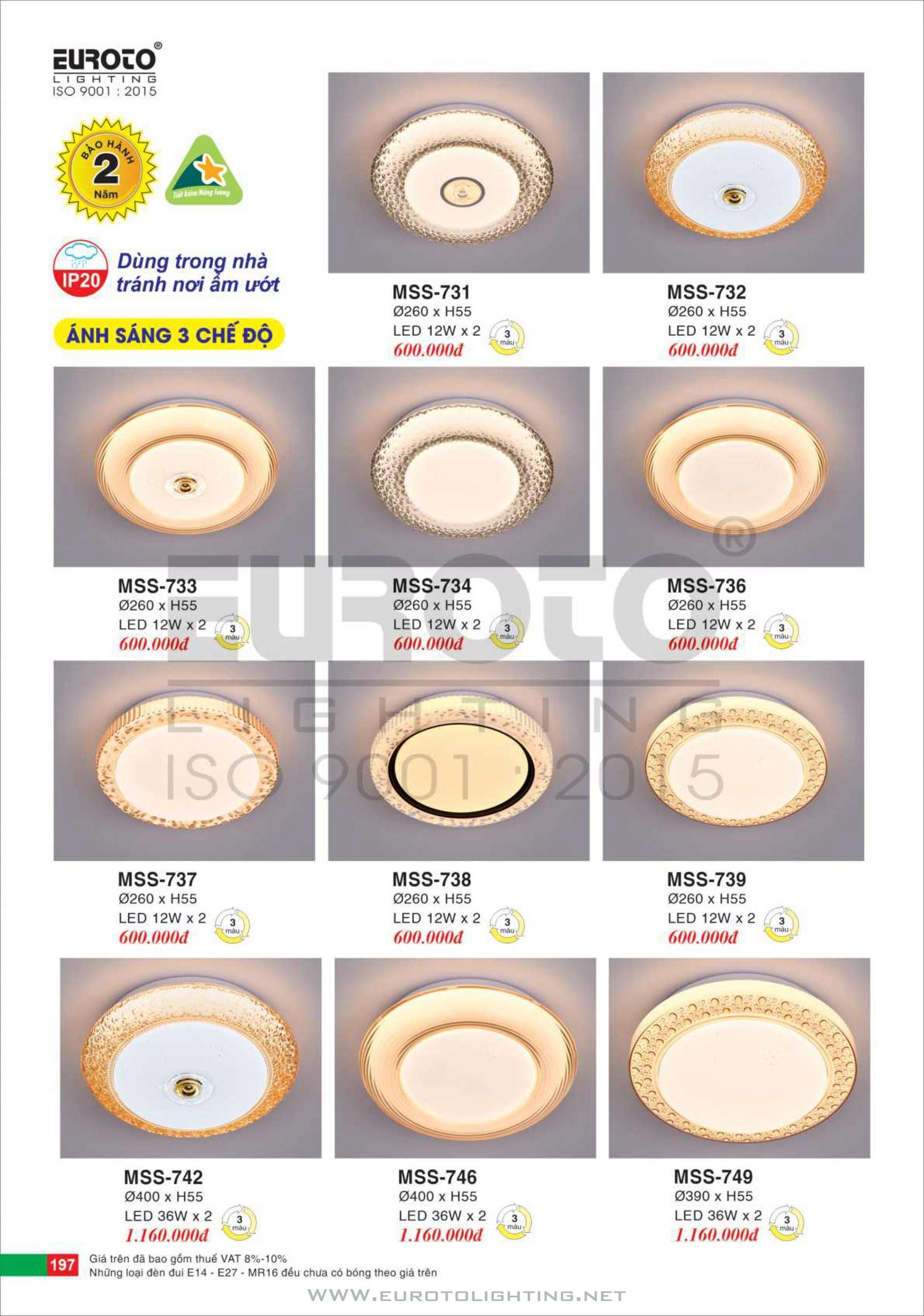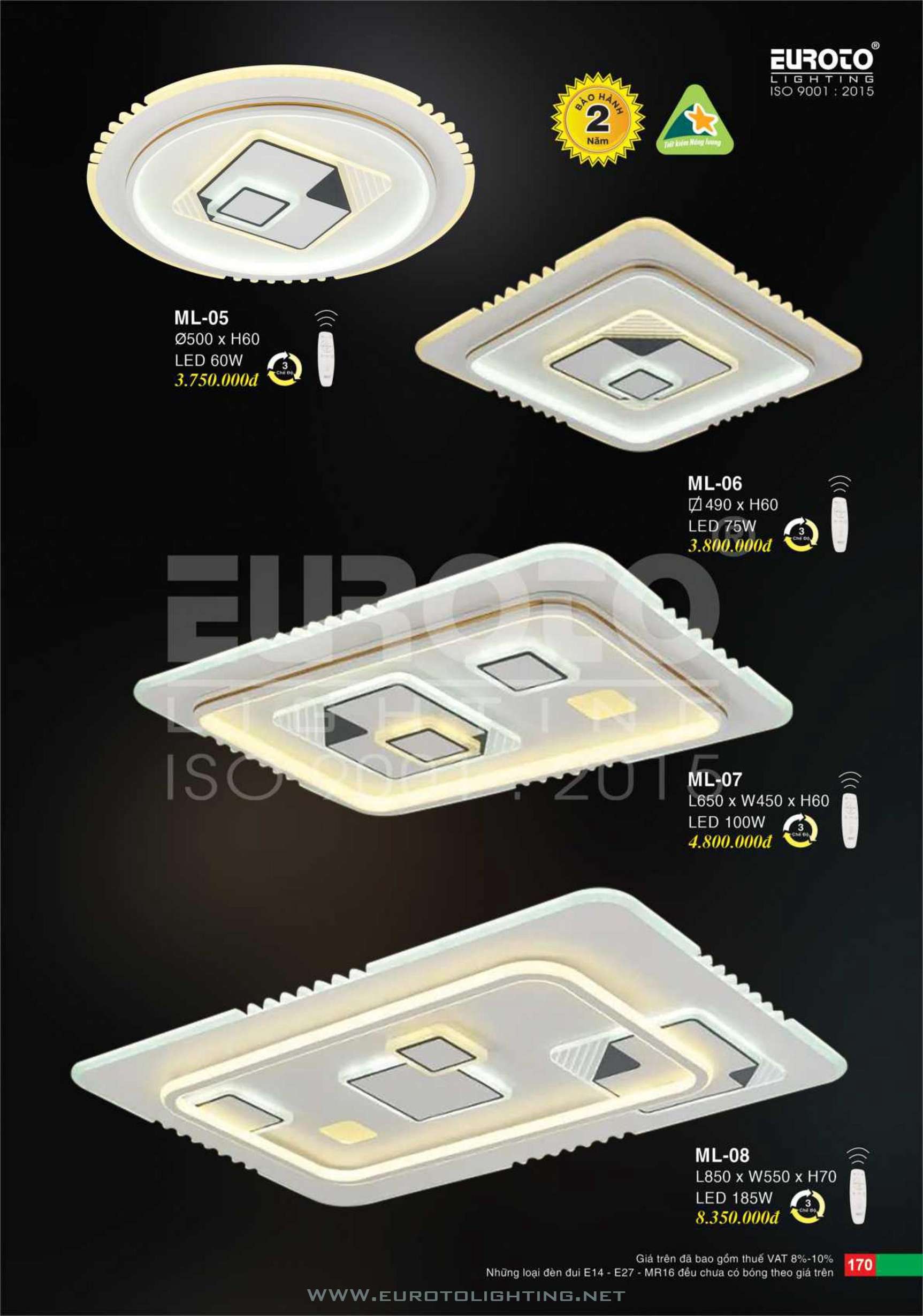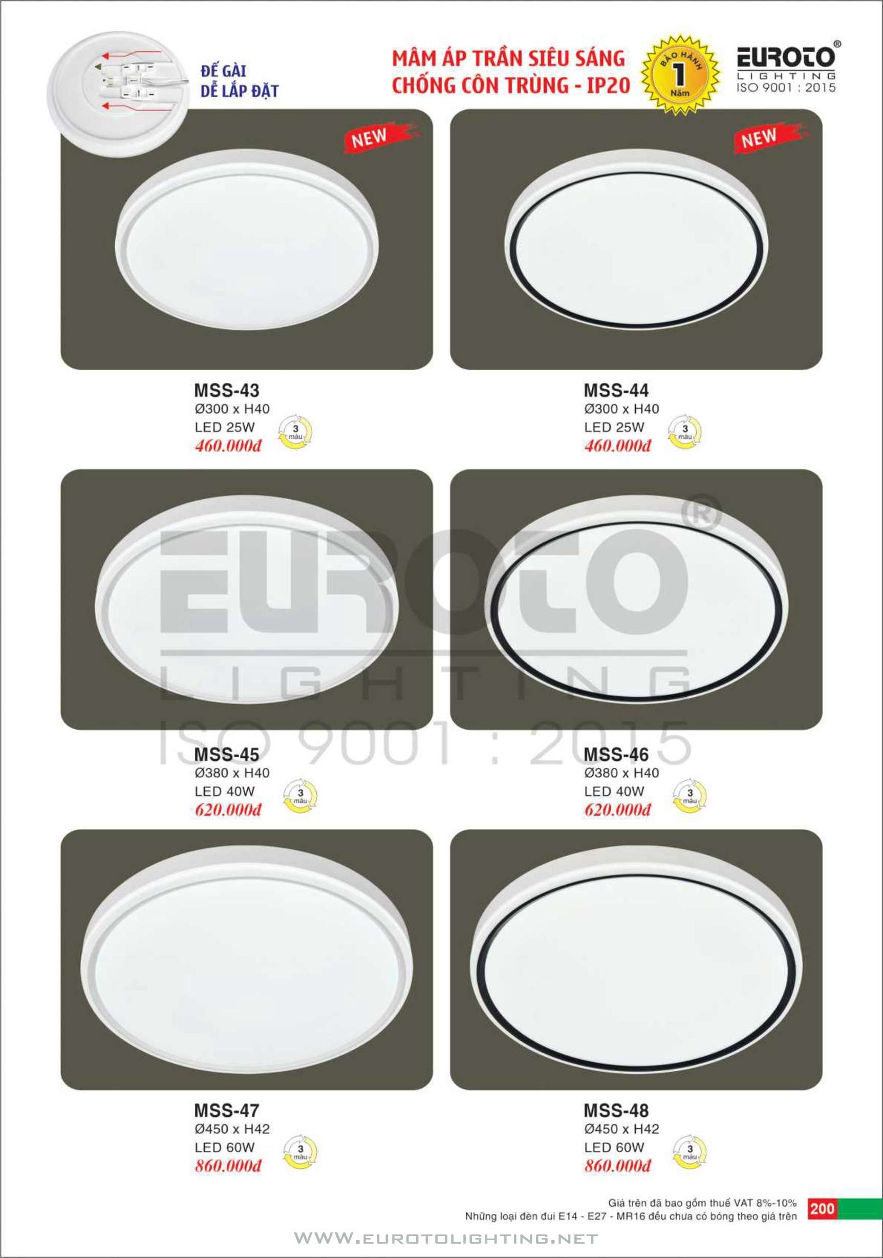 Catalogue Euroto đèn mâm LED ốp trần