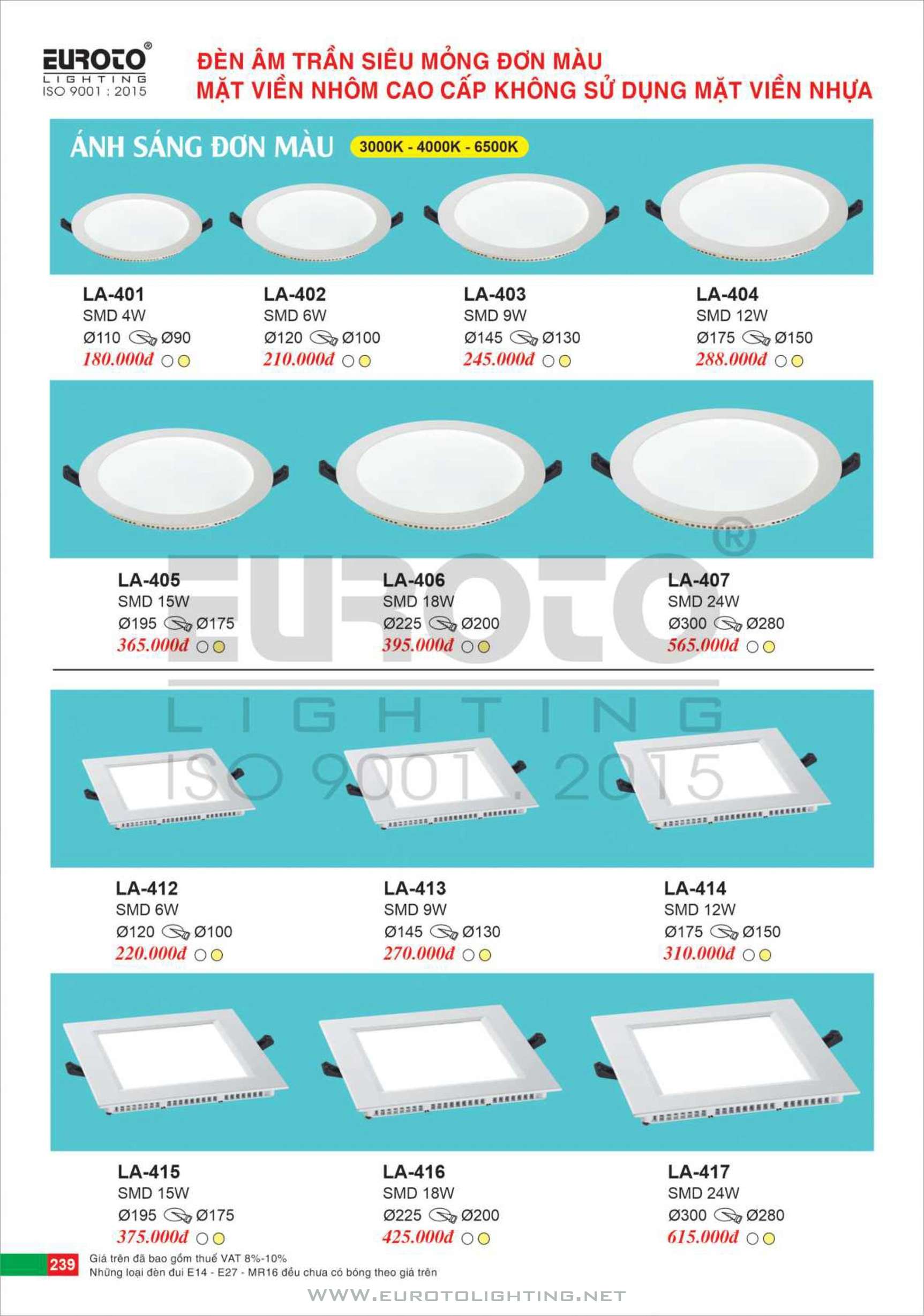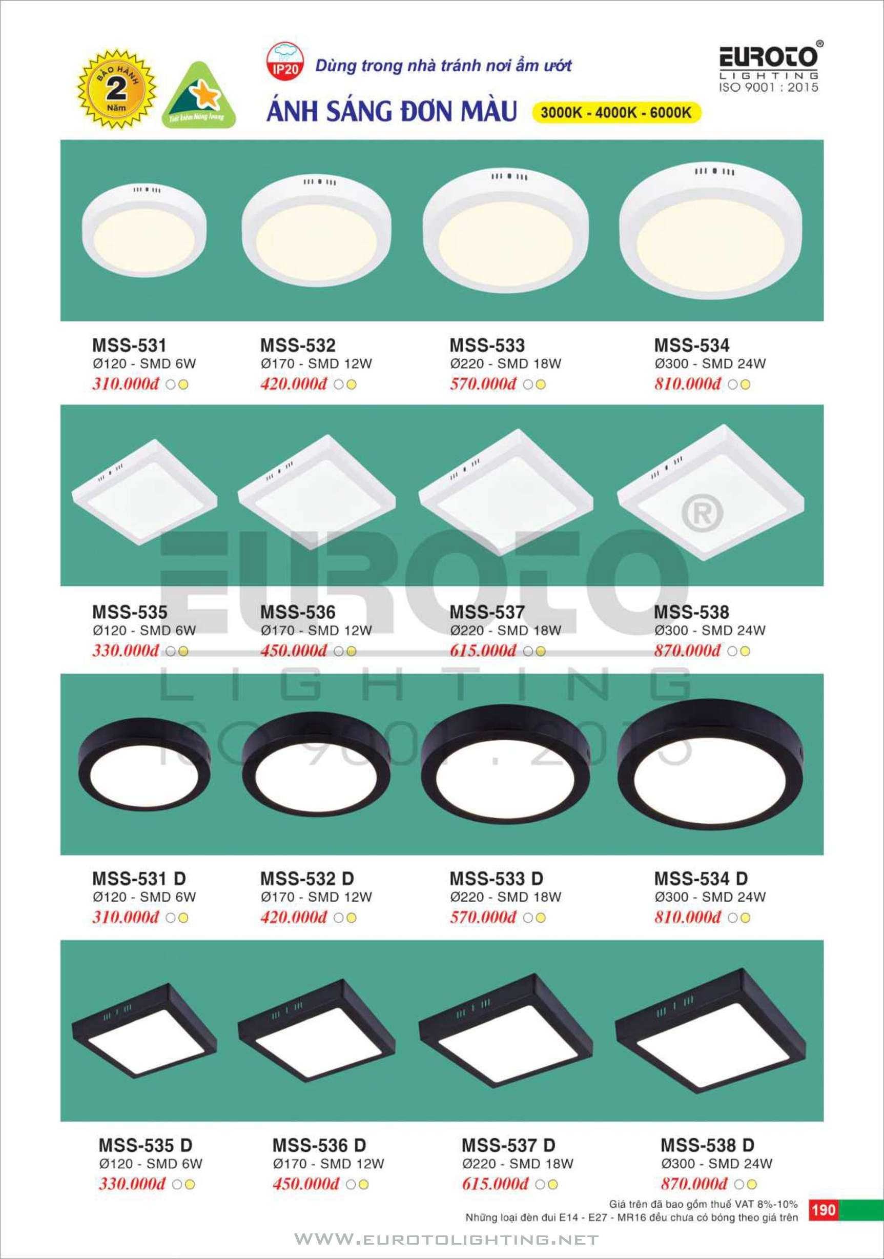 Catalogue Euroto đèn áp trần LED