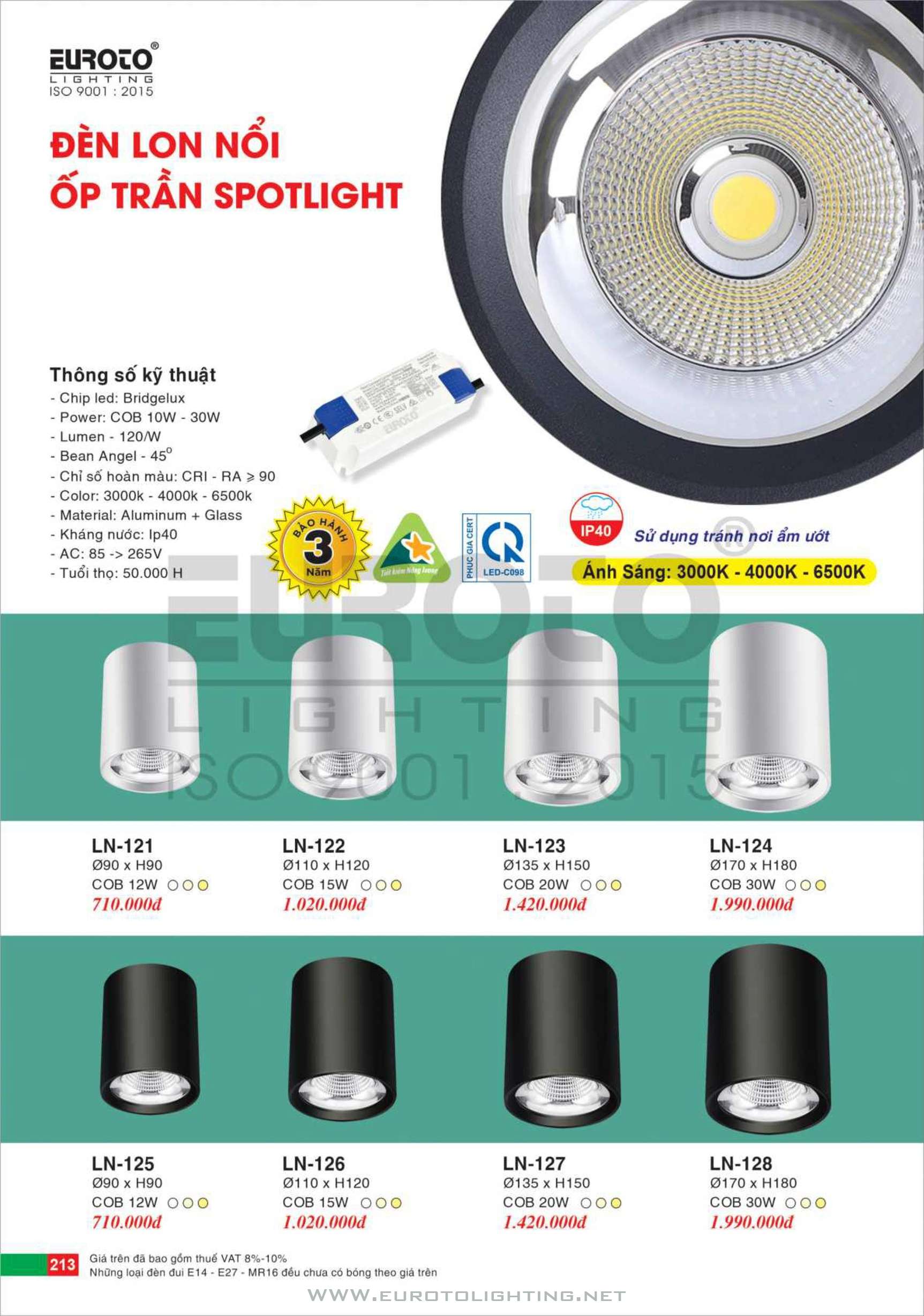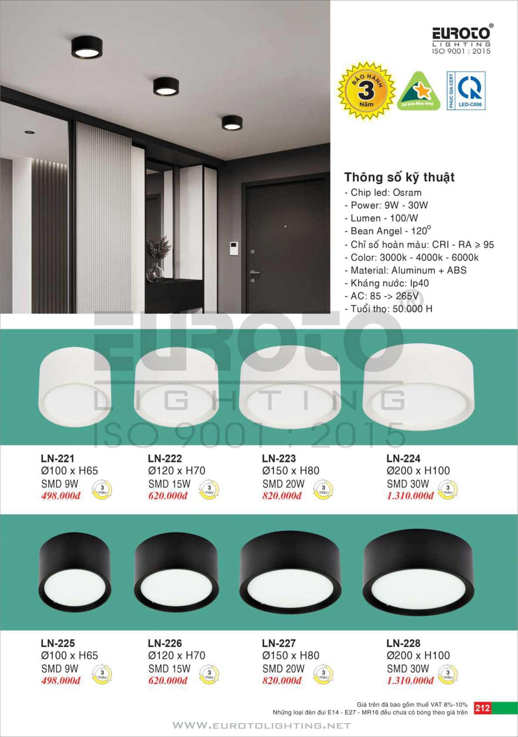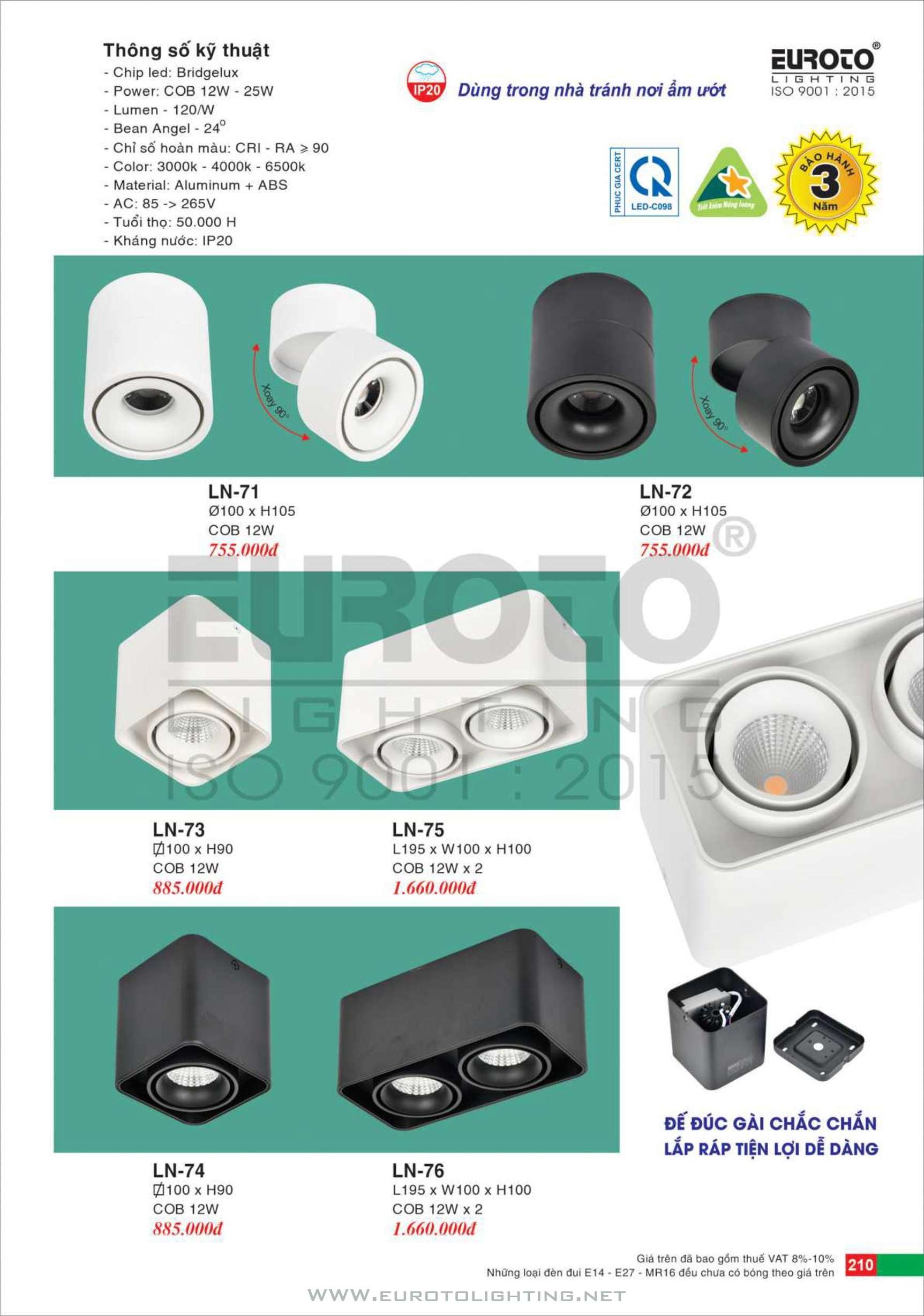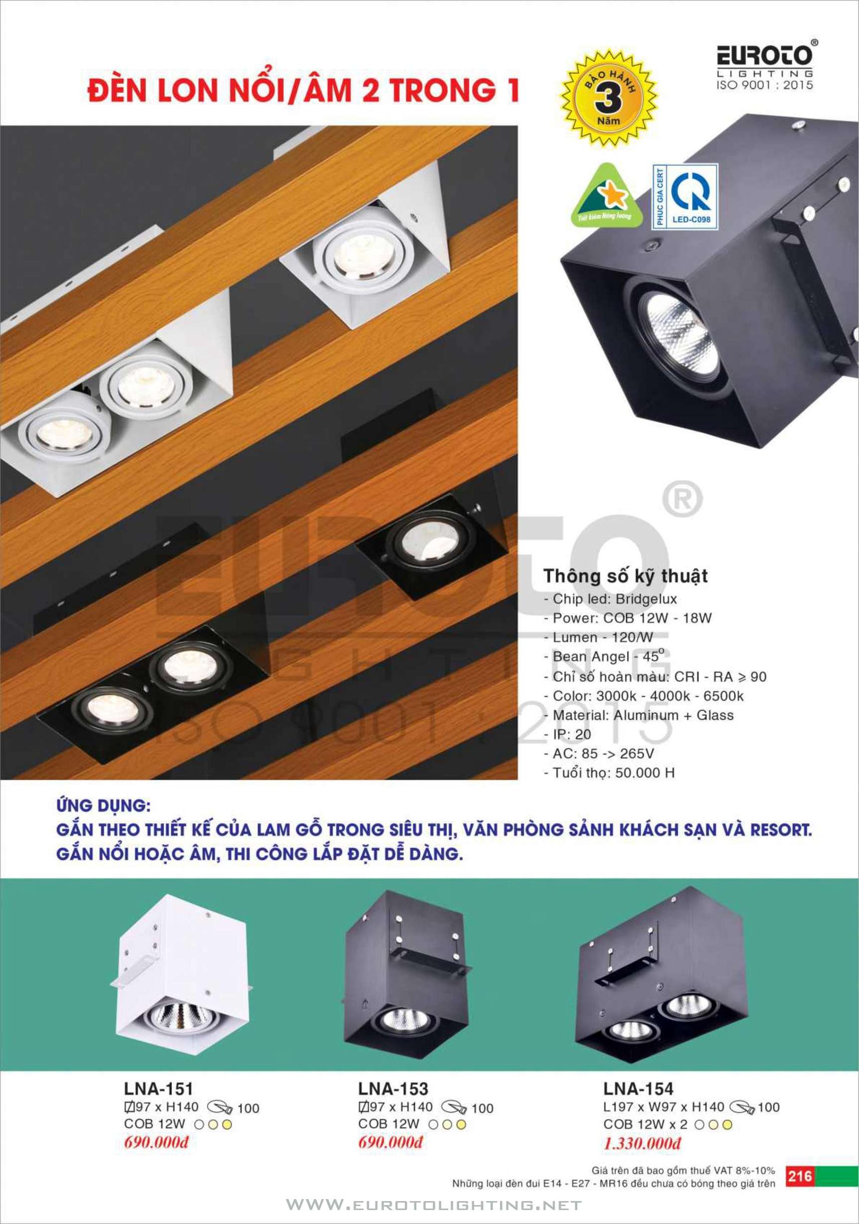 Catalogue Euroto đèn LED Lon gắn nổi
