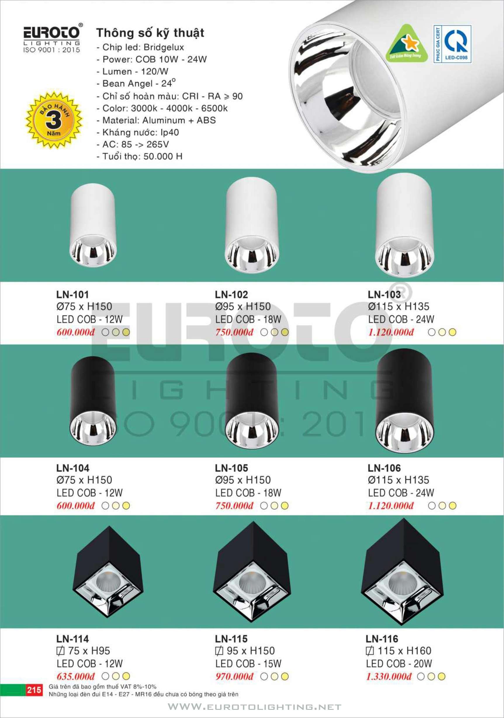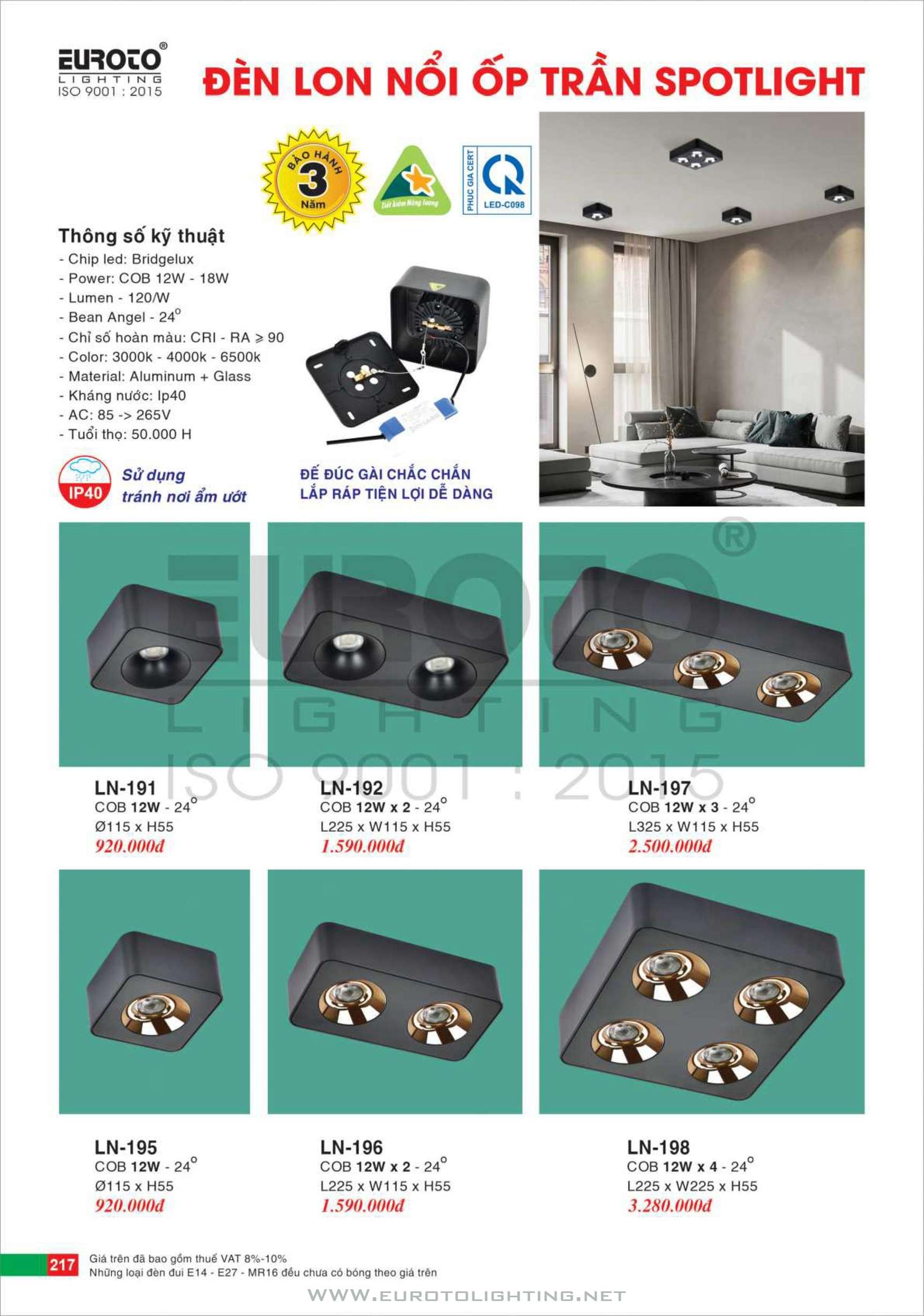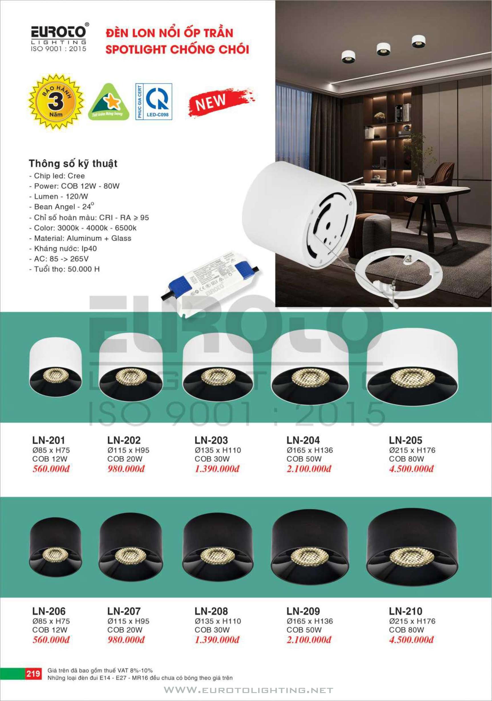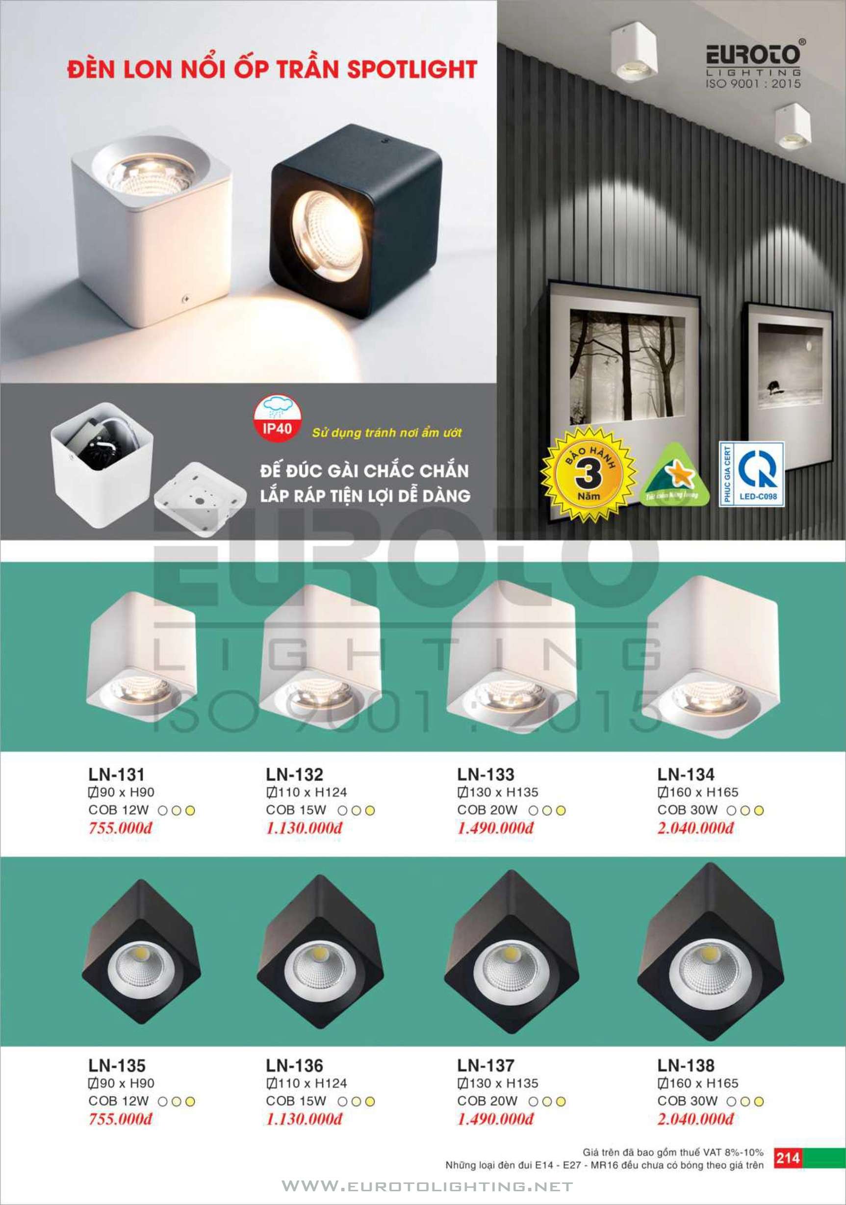 Catalogue Euroto đèn LED Lon gắn nổi