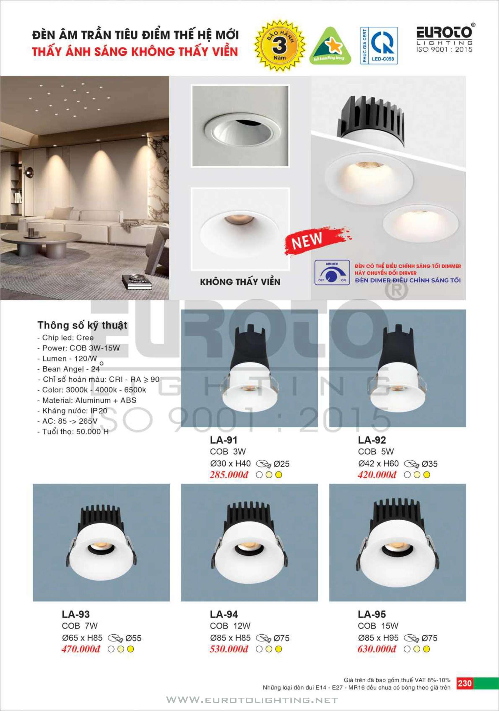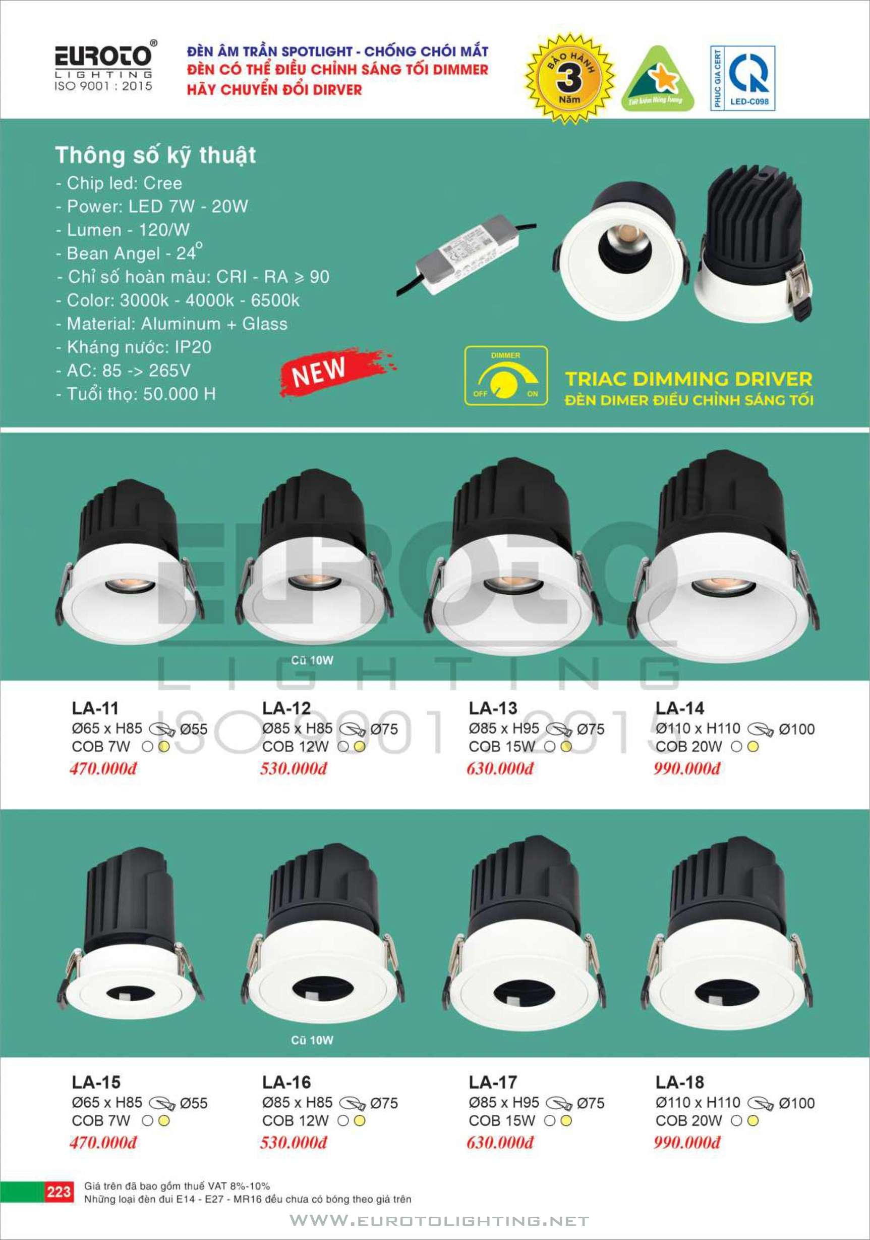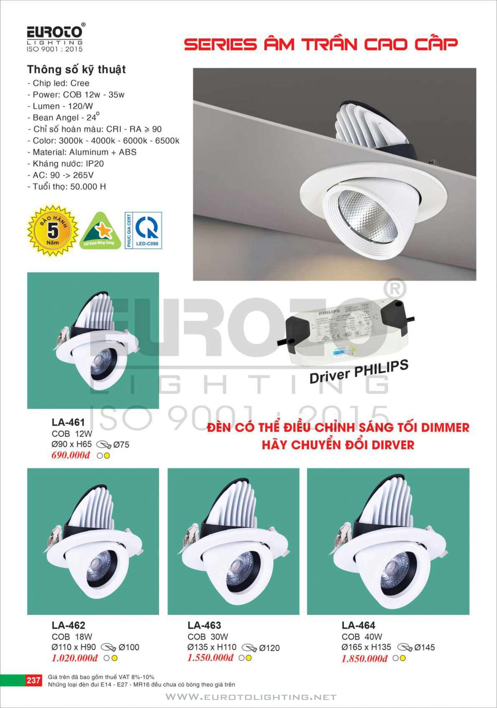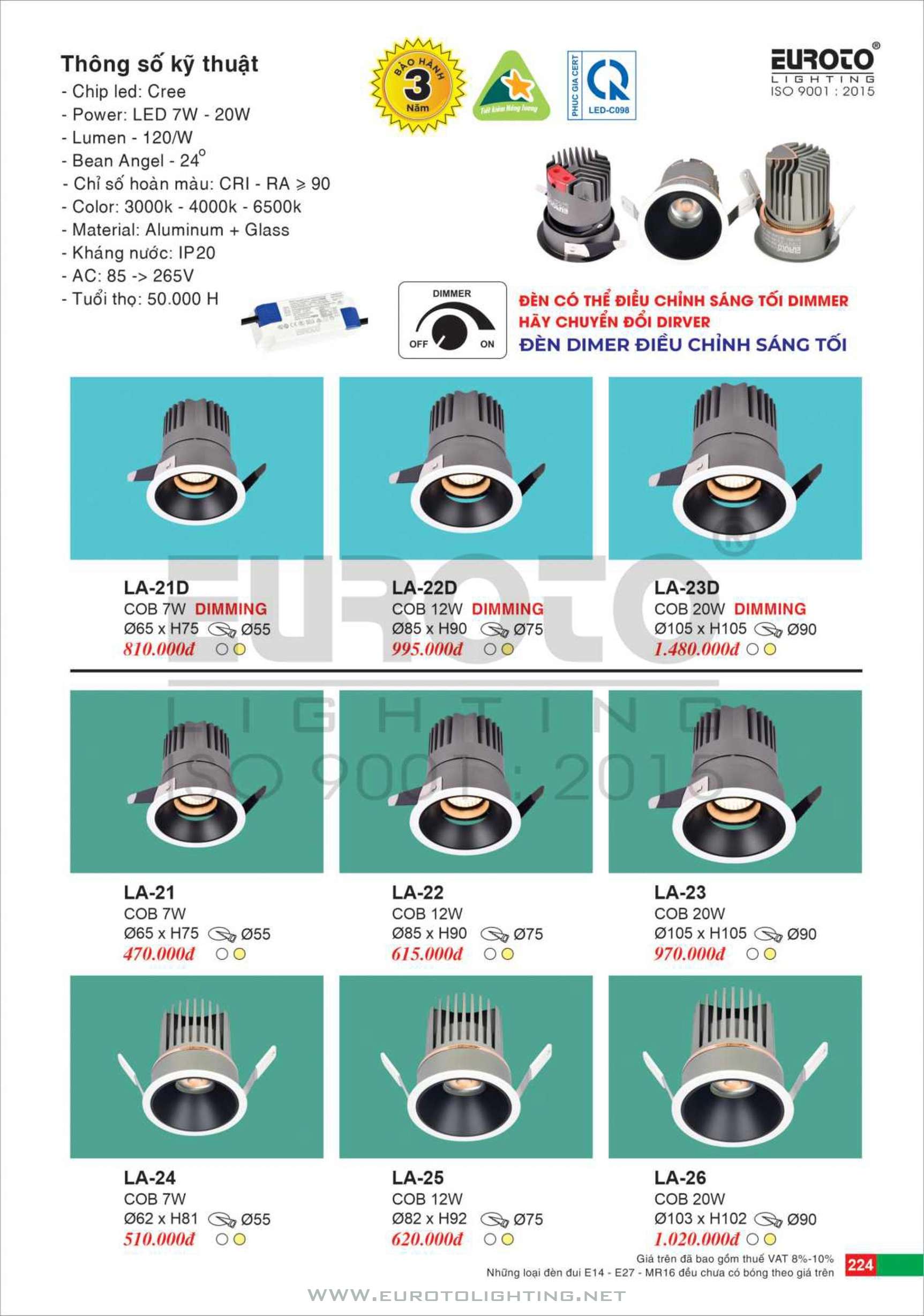 Catalogue Euroto đèn LED âm trần dimmer