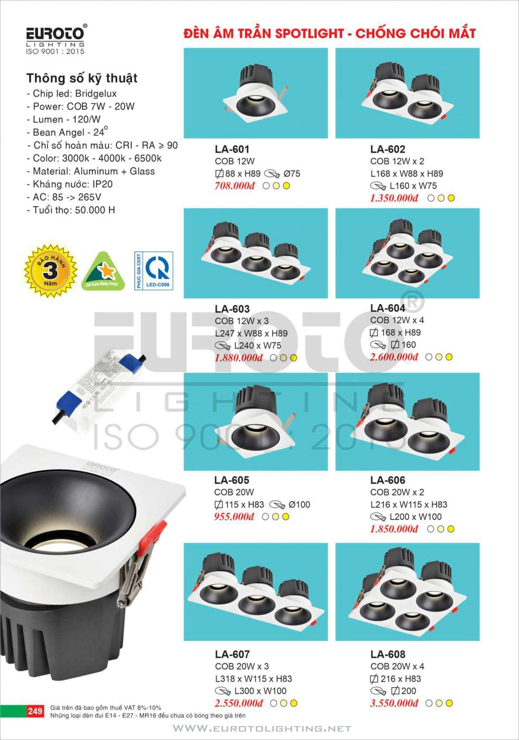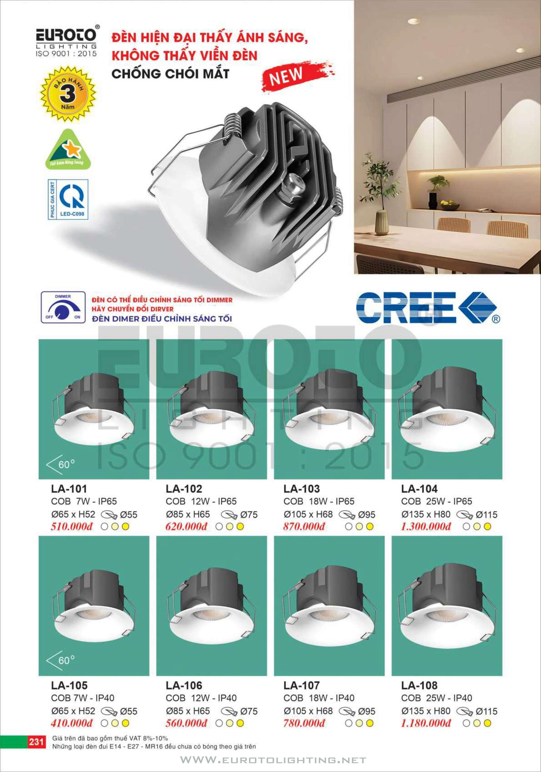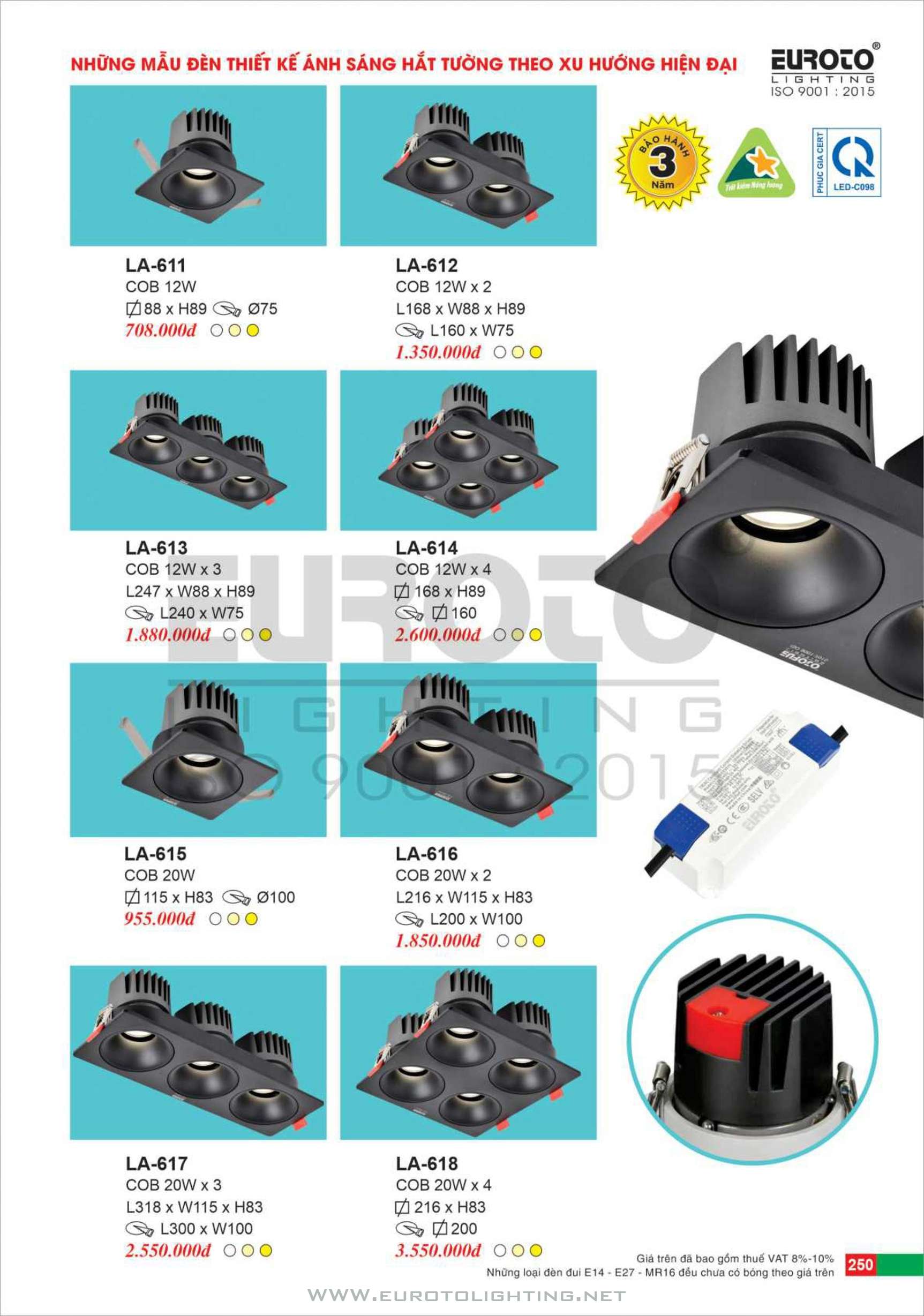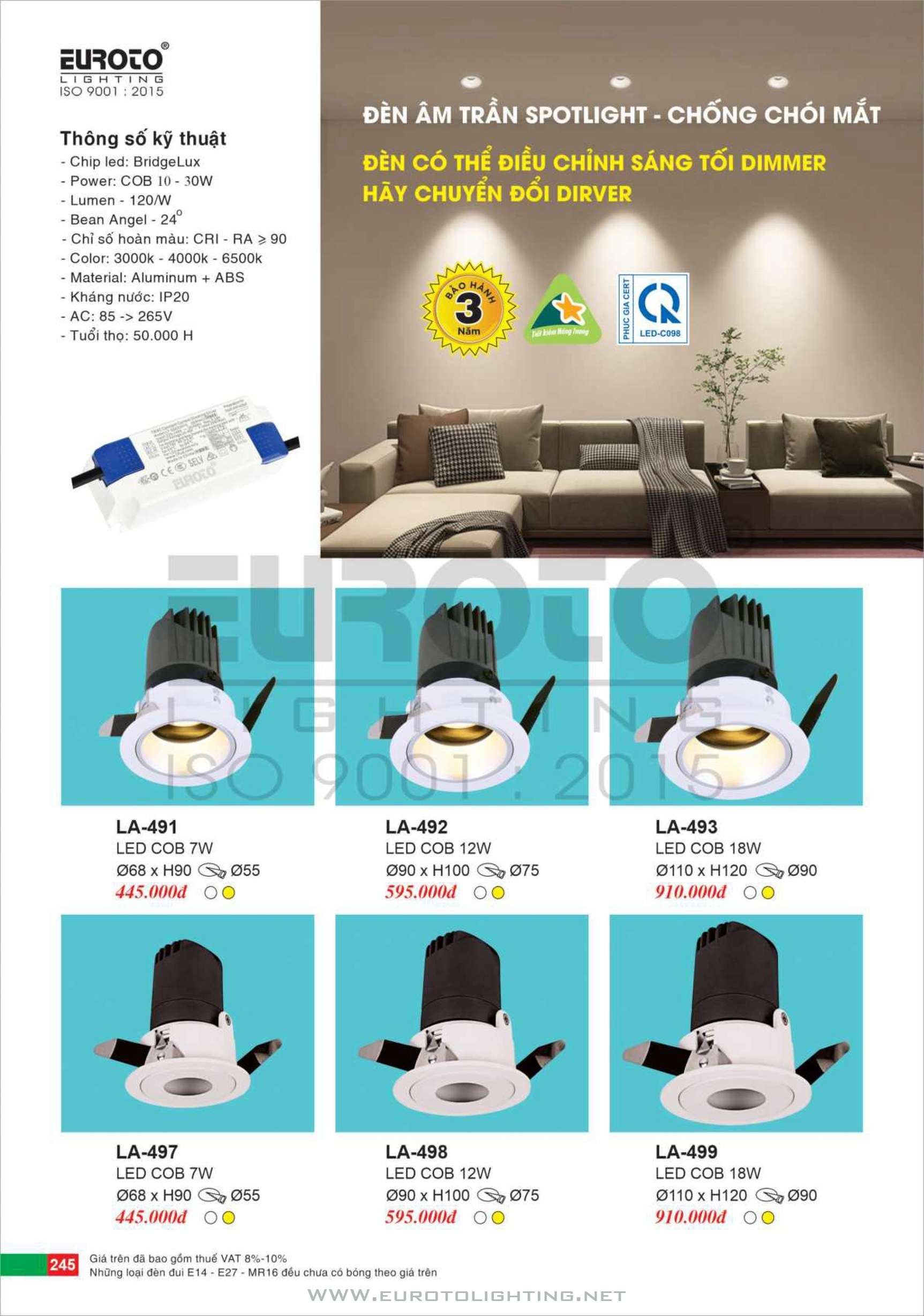Catalogue Euroto đèn LED âm trần dimmer