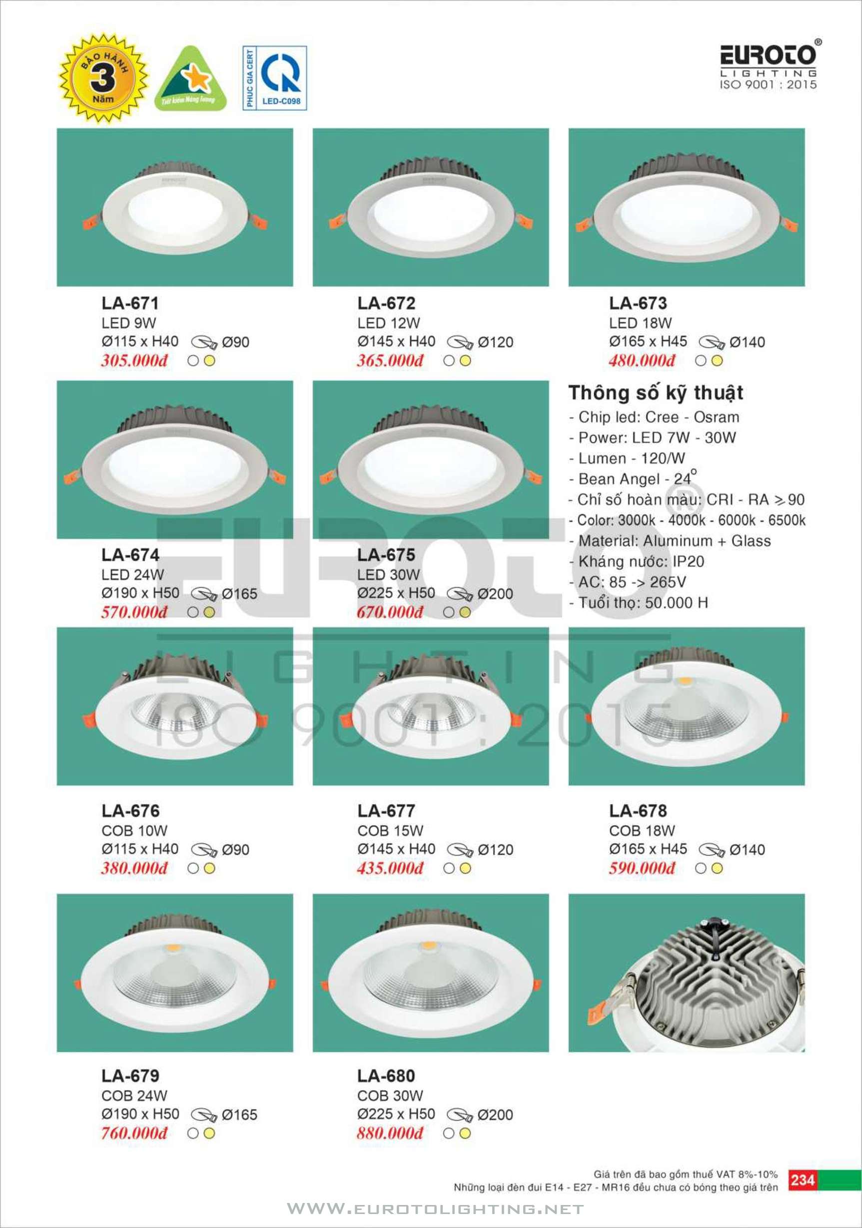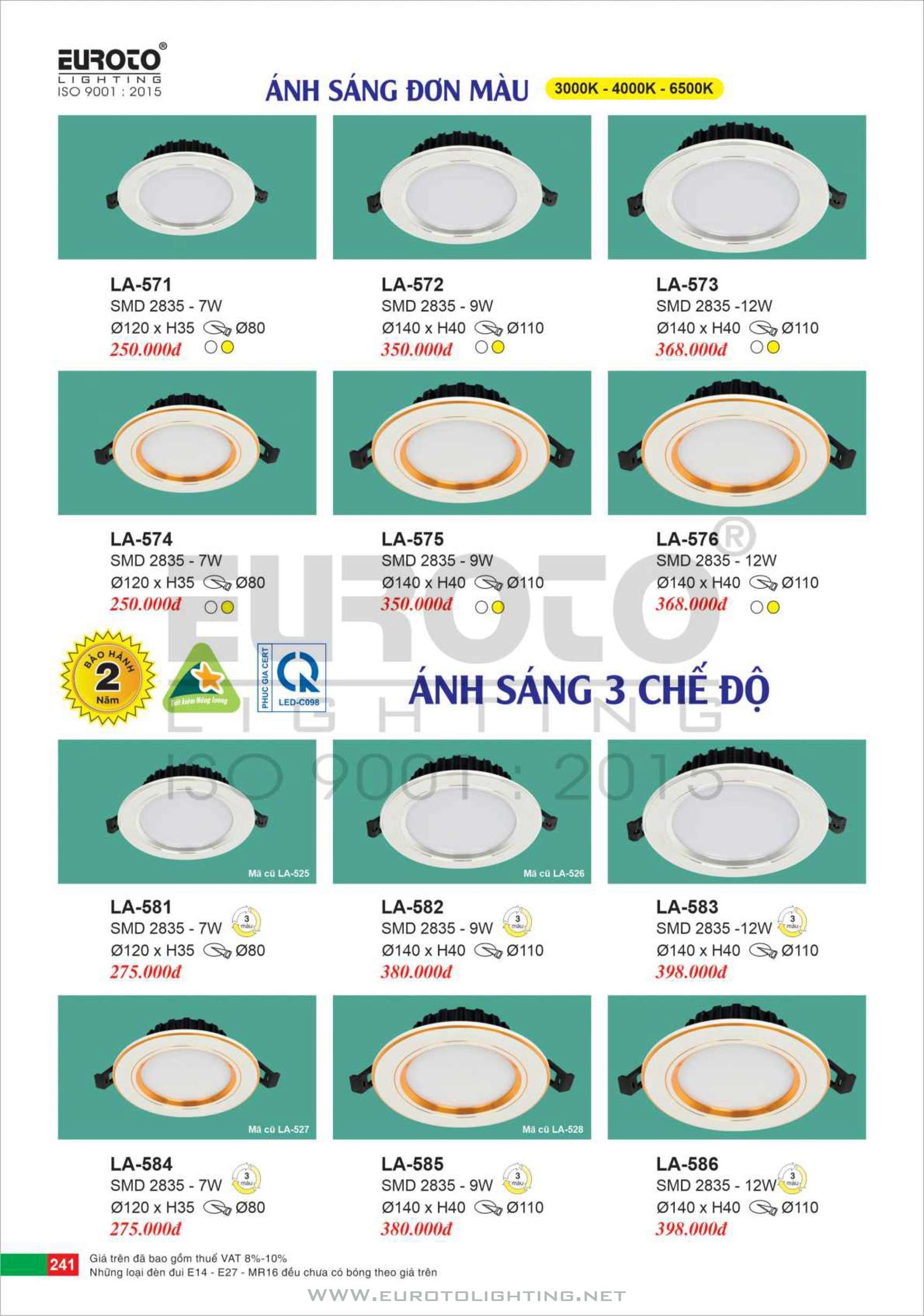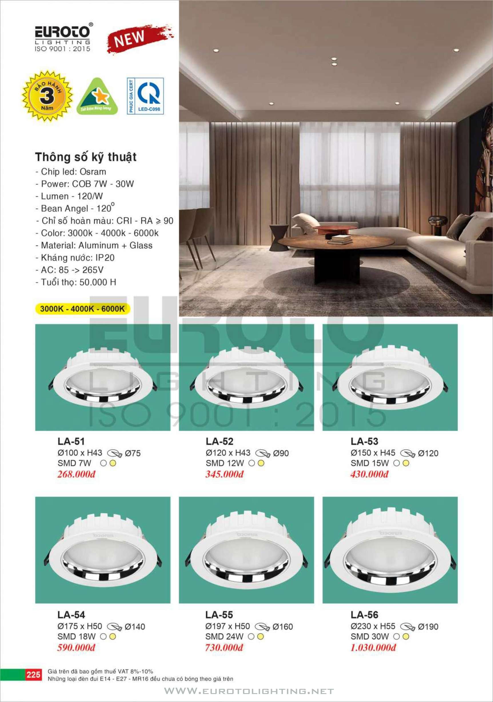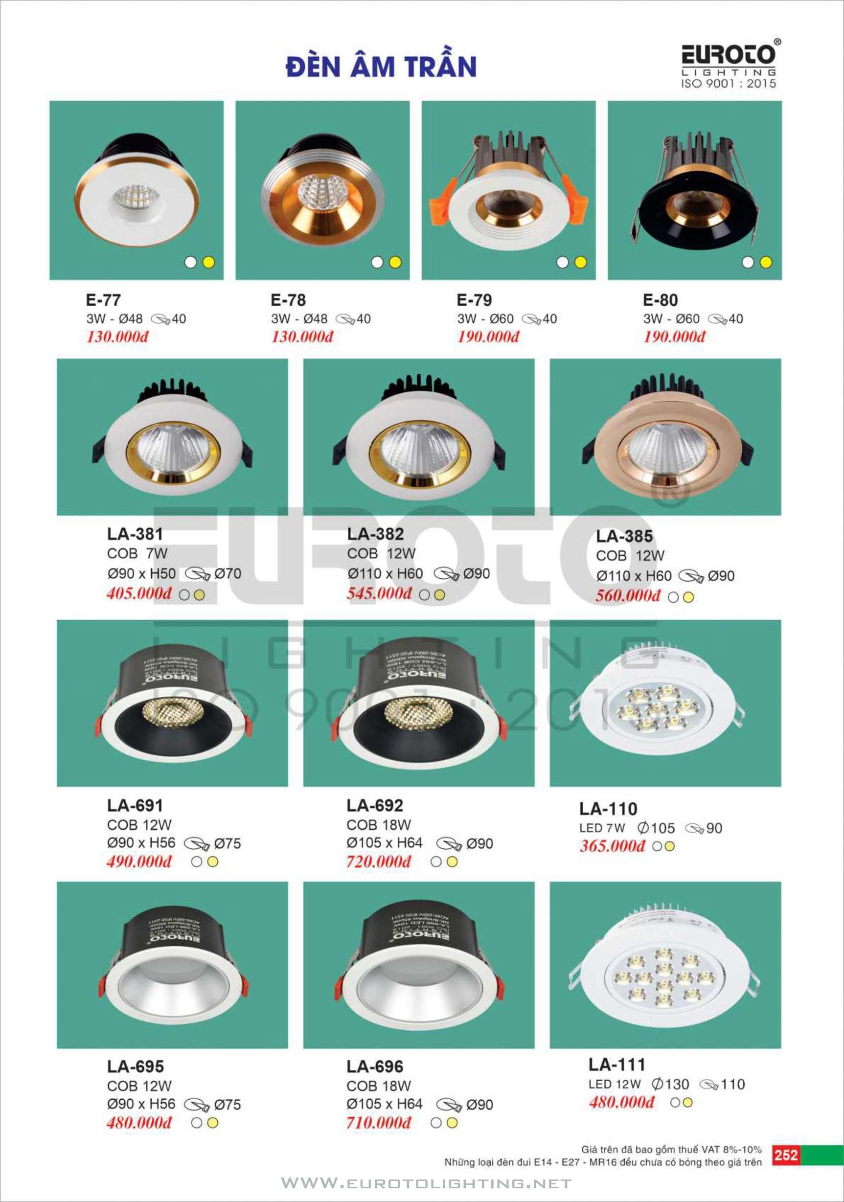 Catalogue Euroto đèn LED downlight âm trần