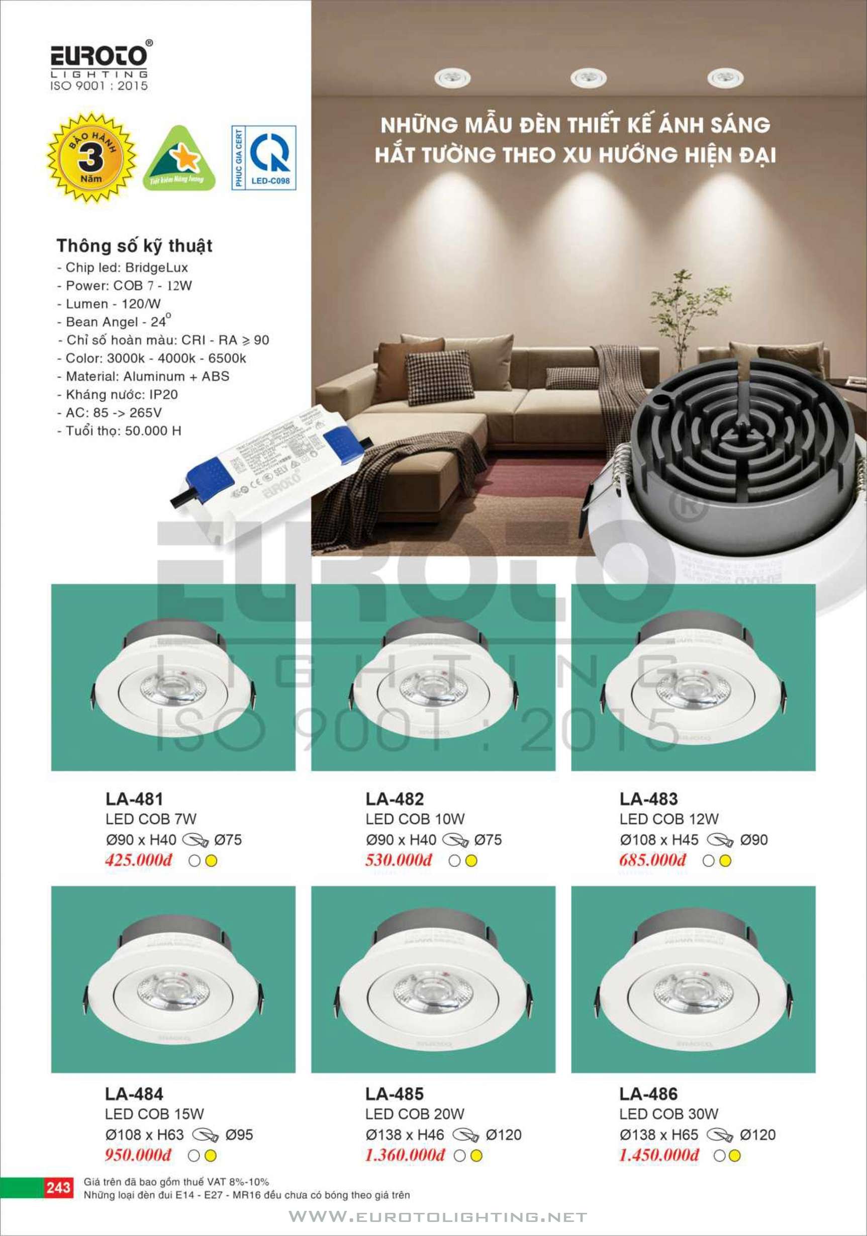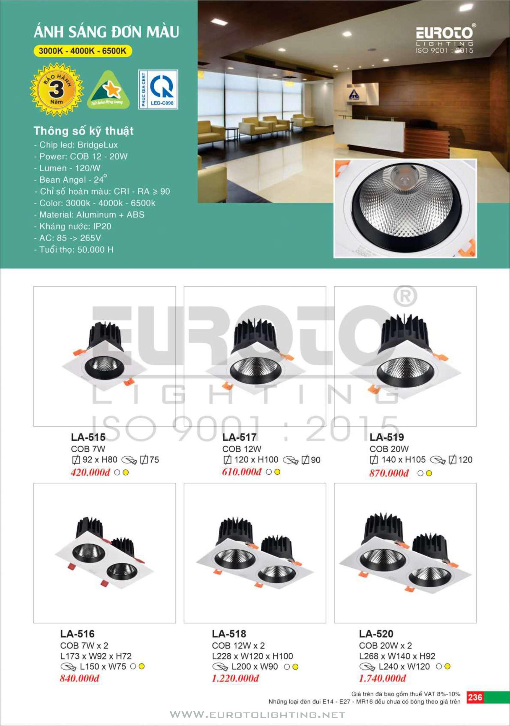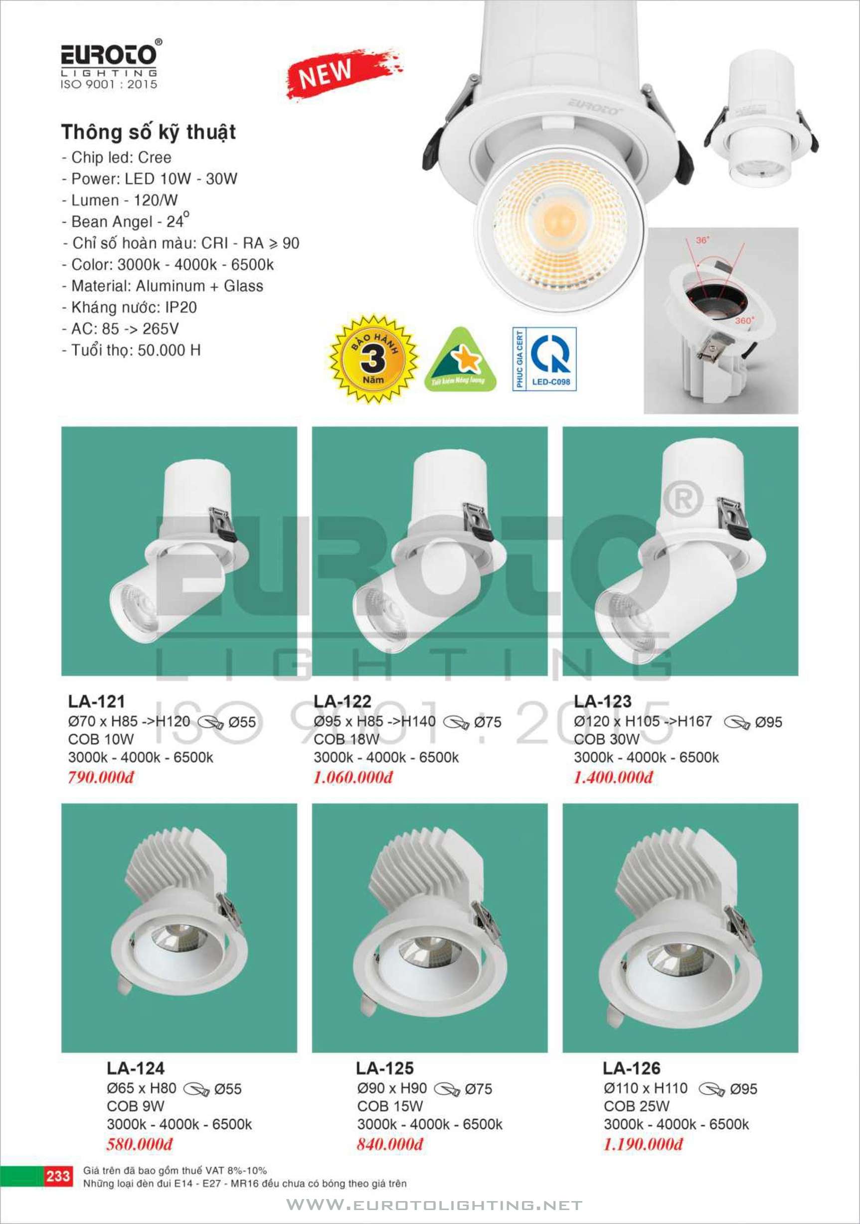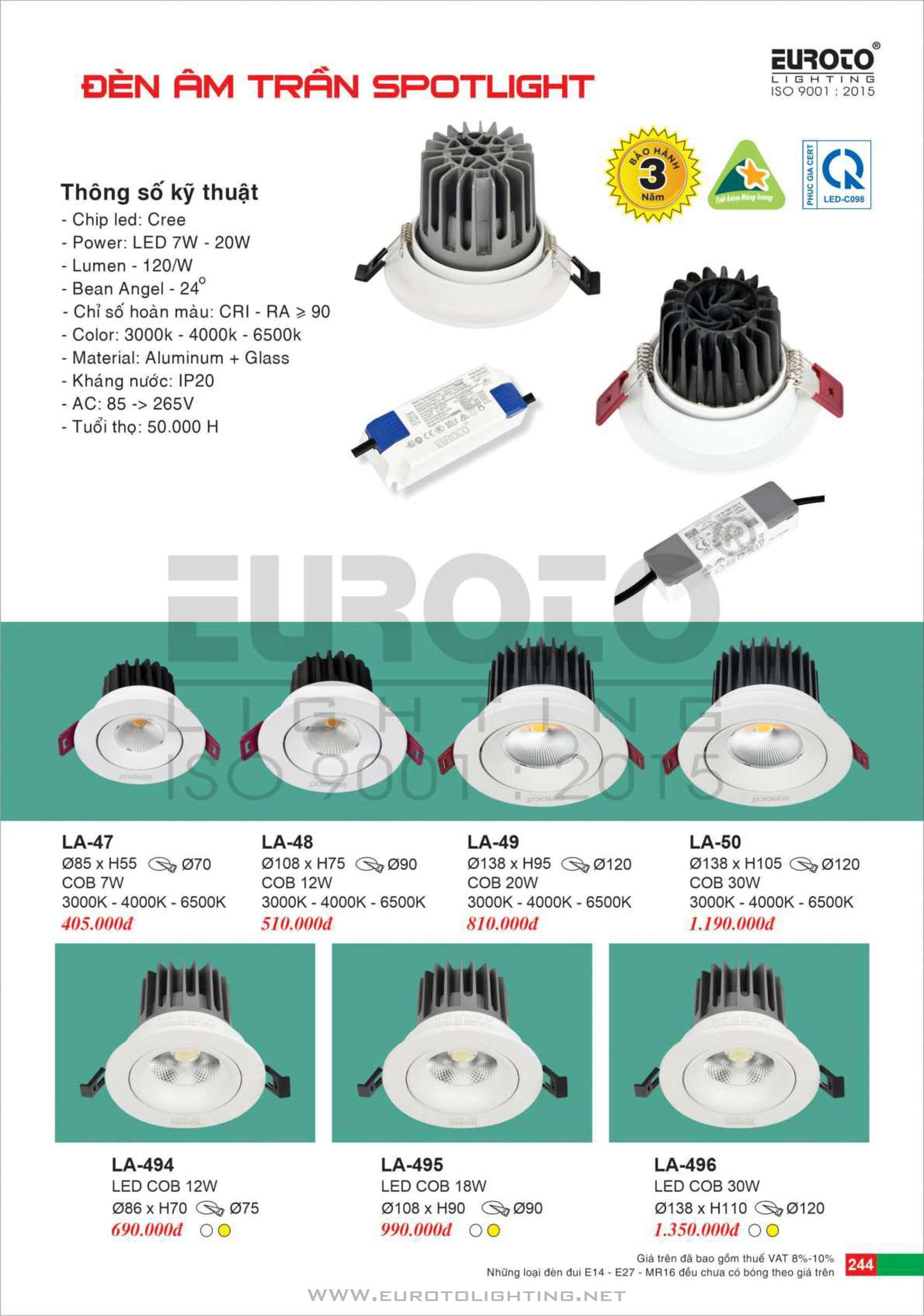 Catalogue Euroto đèn LED downlight âm trần