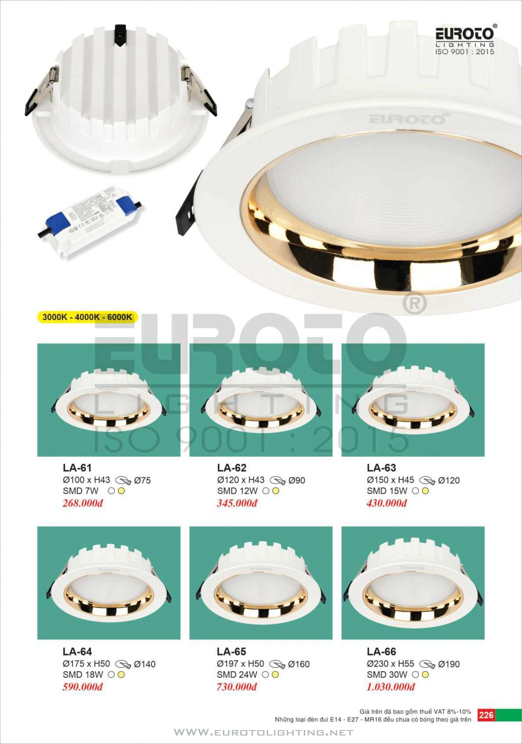 Catalogue Euroto đèn LED downlight âm trần cổ điển