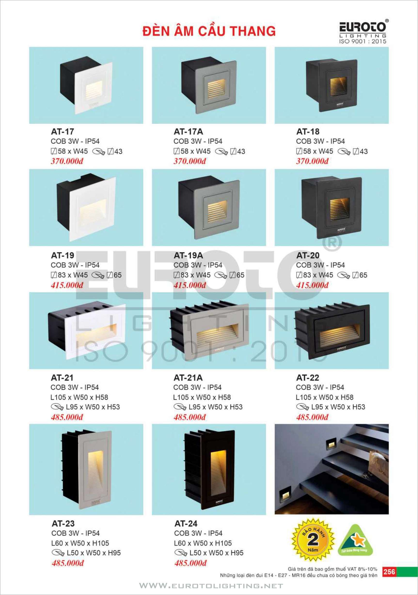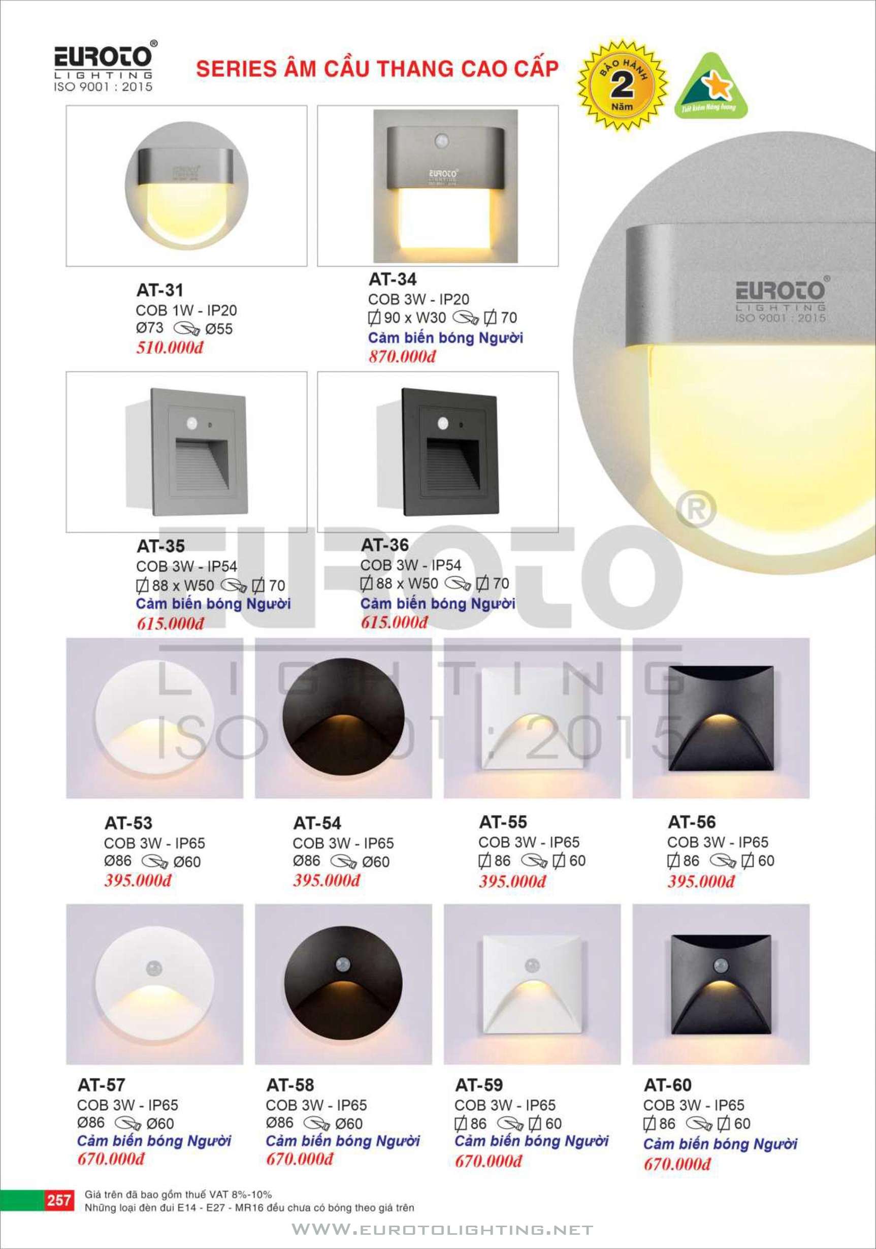 Catalogue Euroto đèn gắn âm vách cảm biến